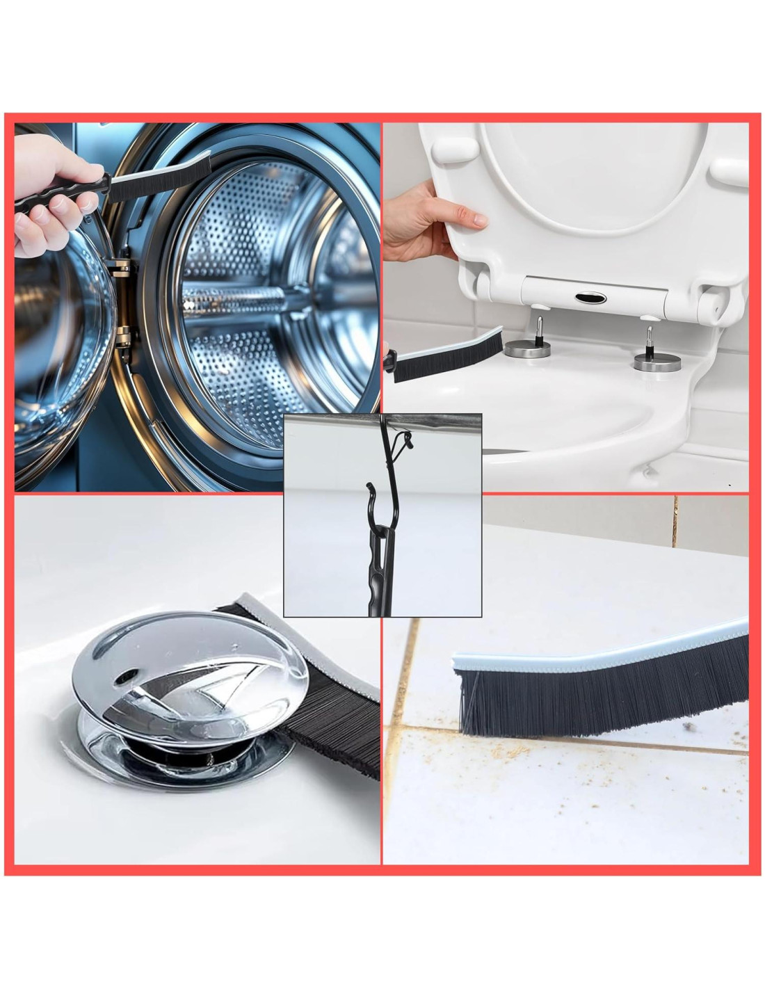 - Uso Multipropósito: Ideal para limpiar rieles de ventanas, puertas corredizas, fregaderos, tapas de inodoro, rieles de puertas de ducha y más. Su diseño delgado se adapta a espacios reducidos para ahorrarte tiempo y esfuerzo. Después de usarlo, simplemente enjuágalo con agua para mantenerlo limpio.