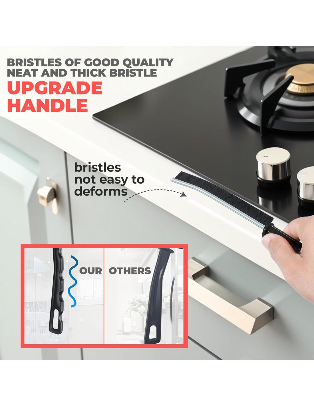 [Cepillos de Ranura con Cerdas Duras]: Cada cepillo de limpieza cuenta con cerdas de PET anguladas, finas y rígidas para una máxima eficiencia de limpieza. Limpia incluso los acumulamientos de suciedad más difíciles y manchas en aquellas áreas donde los cepillos de limpieza domésticos normales no pueden llegar, como ranuras de ventanas, rieles de puertas, fregaderos, estufas, esquinas de bañeras, etc.