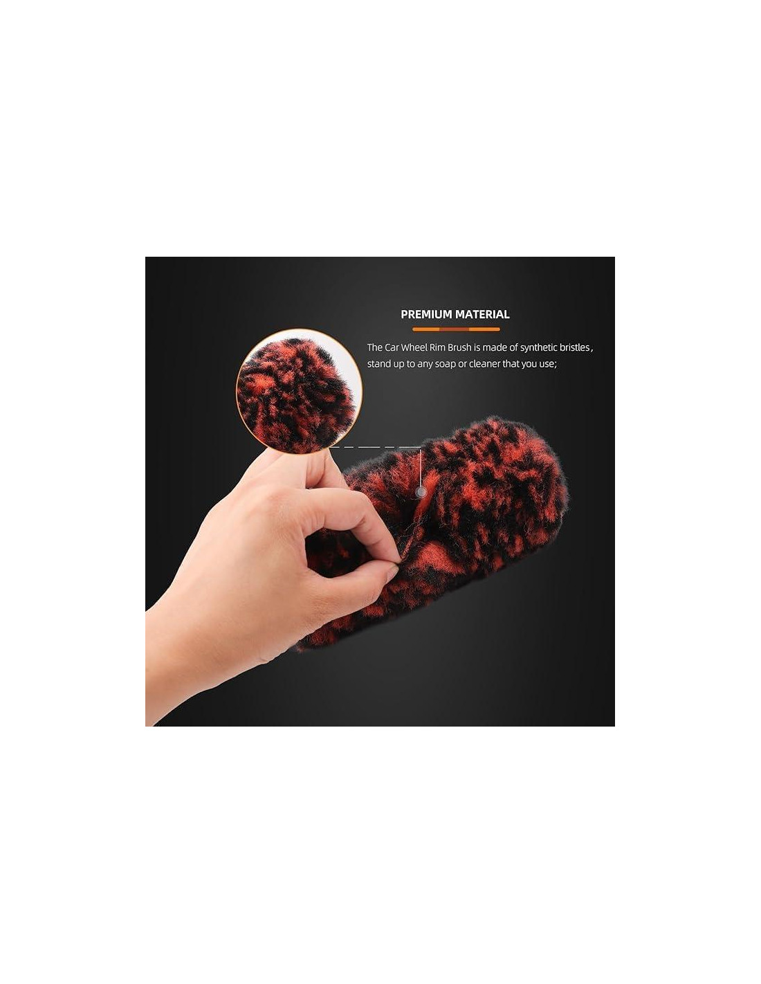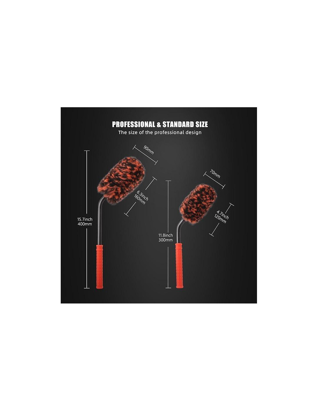 - MATERIAL PREMIUM: Hecho de lana sintética de alta calidad con alta densidad y cerdas suaves, son muy duraderos y retienen bien la espuma, haciendo que la limpieza de las ruedas sea muy fácil.