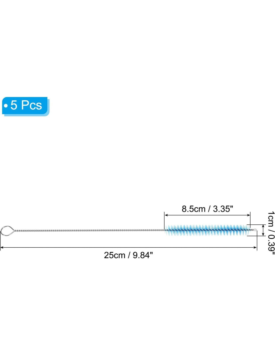 - Color: Azul; Material: Acero Inoxidable 304, Nylon; Longitud del Cepillo: 8.5cm (3.35 pulgadas); Tamaño Total: 25 x 1 cm (9.84 x 0.39 pulgadas) (L*Diámetro); Lista de Empaque: 5pcs x Cepillo Limpiador de Pajitas