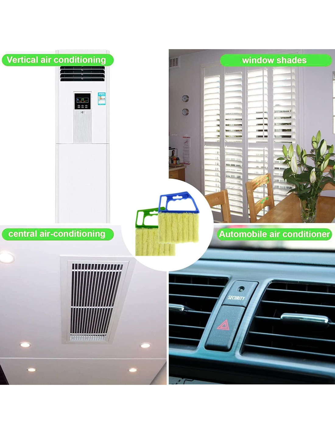 - Aplicaciones: Conveniente y efectivo para limpiar la mayoría de los tipos de persianas u objetos similares, usar para persianas de ventana, persianas verticales, persianas de aire acondicionado, toldos, etc.