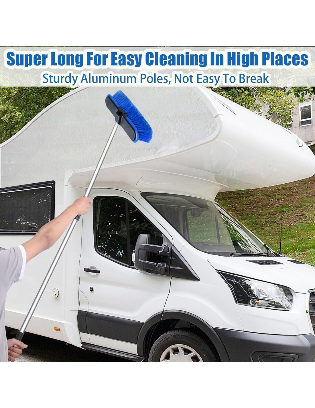 - [Cepillo de Lavado de Autos con Mango Largo de 62"] - Mop de lavado de autos con varillas de aluminio resistentes de alta calidad que no solo son livianas, sino que también evitan estiramientos, doblados o torsiones, lo que facilita y hace eficiente la limpieza de tu auto. El diseño de mango largo permite una limpieza fácil de los techos de autos, RV, SUV y camiones, y áreas de difícil acceso. Las 4 secciones de varillas de aluminio se pueden ensamblar libremente en diferentes longitudes, como 32.6'', 46.3'' y 62'', para satisfacer diferentes alturas de limpieza.