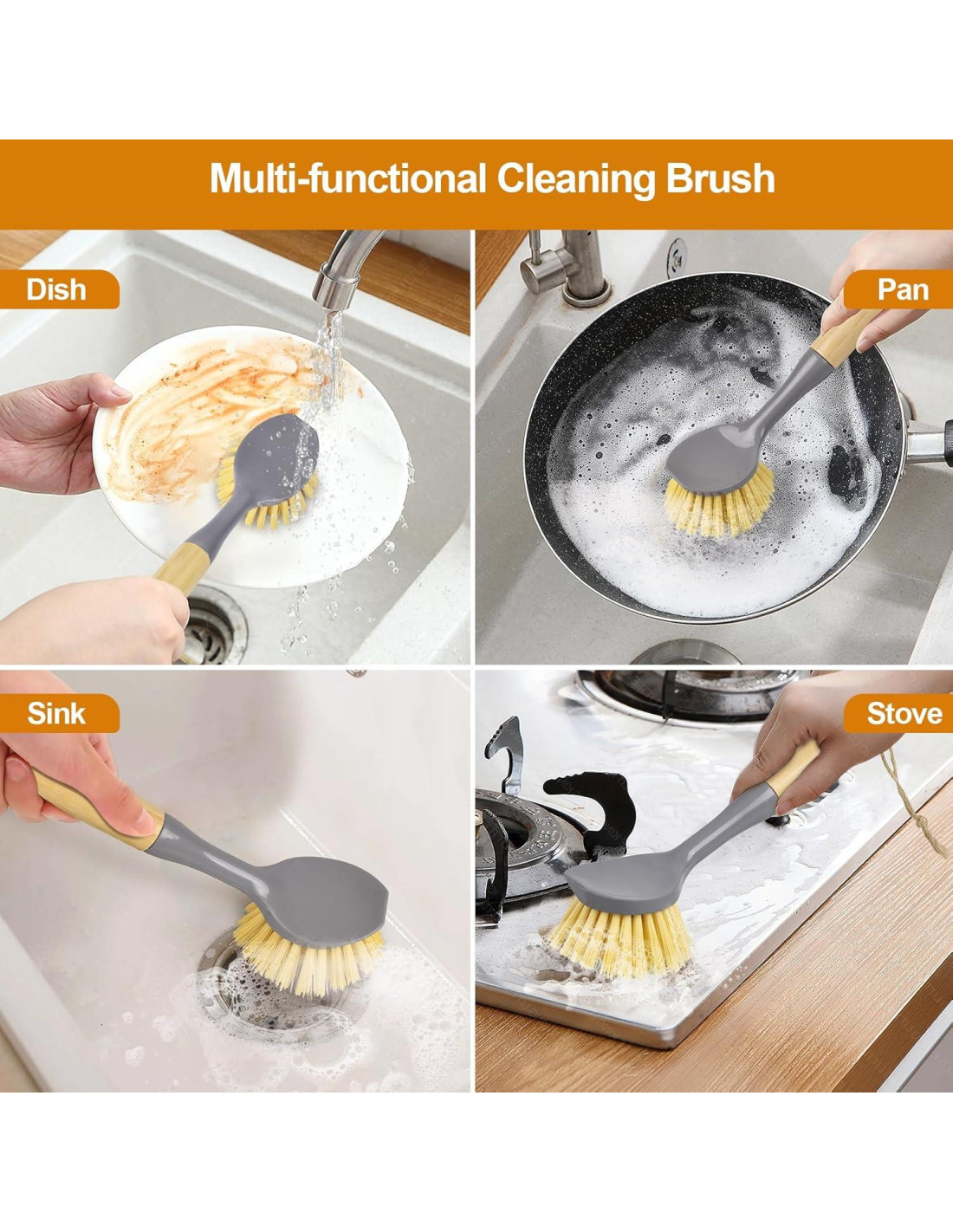 - Herramienta de Limpieza Versátil: Este conjunto de 2 cepillos para lavar platos es perfecto para lavar platos, bandejas para hornear, parrillas, fregaderos y sartenes