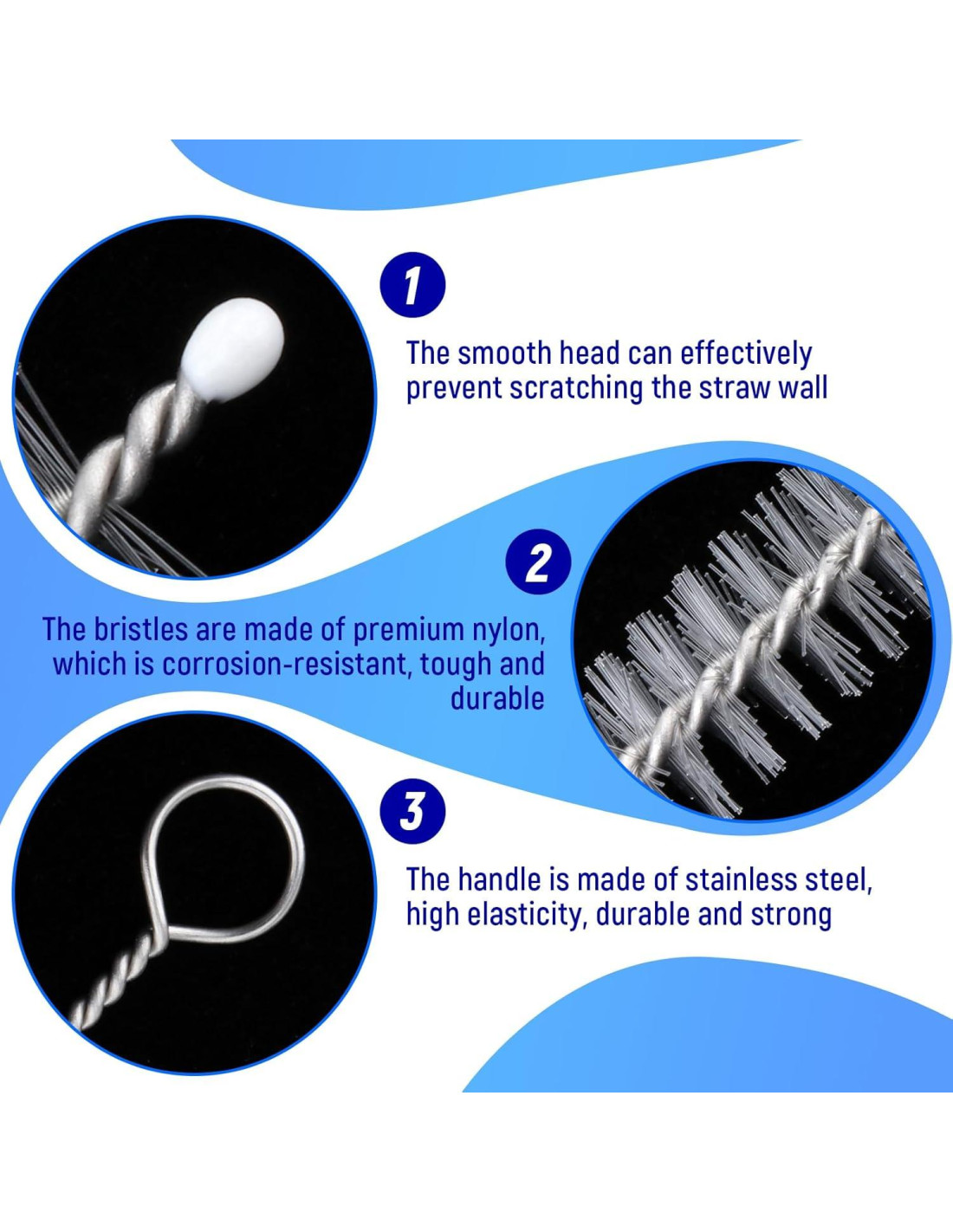 - [Fácil de Usar y Almacenar] Elige el cepillo de diámetro correcto, gíralo suavemente, sácalo y límpialo. Un conjunto de 50 cepillos limpiadores de popotes son fáciles de almacenar. La longitud del mango del cepillo es adecuada para sostener con la mano, para que puedas limpiar fácilmente cada rincón oculto.