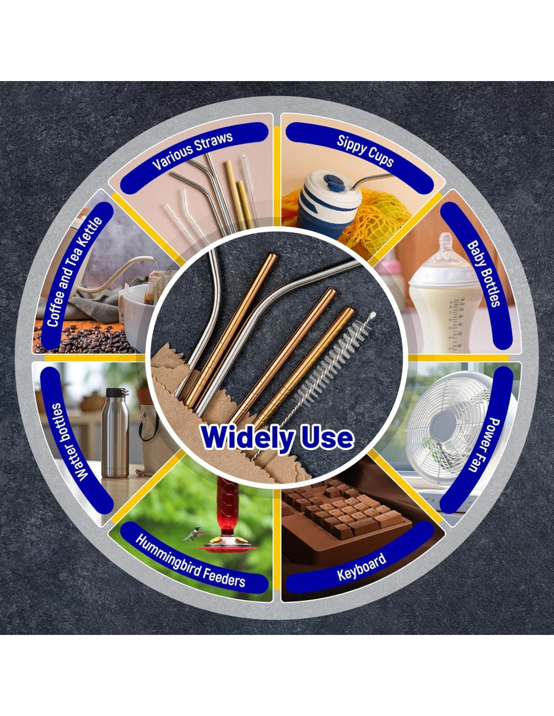 - [Uso Amplio] Estos Limpiadores de Tubos se utilizan ampliamente con todos los materiales de popotes, tubos y todas las botellas de cuello estrecho, también se puede usar para limpiar tubos estrechos, ventiladores de potencia, cafeteras, desagües de fregaderos, alimentadores de colibrí y otros rincones y agujeros de difícil acceso.
