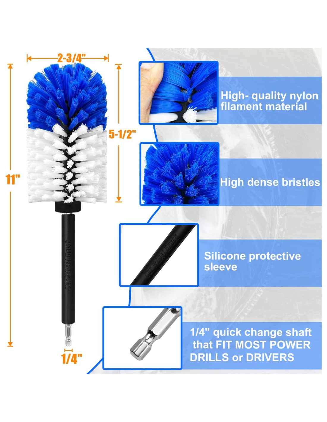 - Manga protectora de silicona: La manga de silicona del mango previene rayones y colisiones durante la limpieza. El cepillo incluye un eje de cambio rápido de 0.6 cm, compatible con la mayoría de taladros y controladores eléctricos para un uso fácil