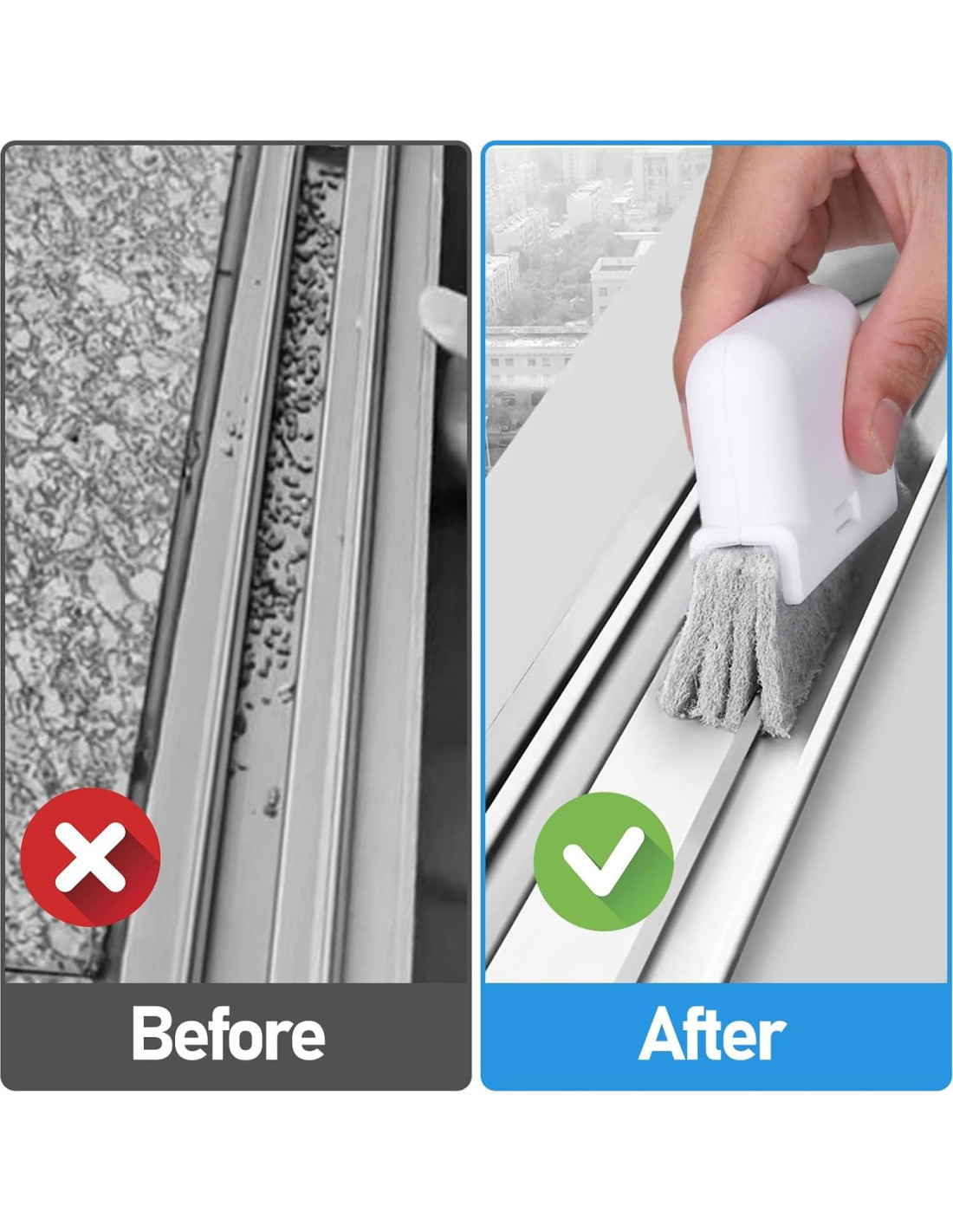 - Material Duradero: El cepillo de limpieza de ranuras de ventana mágico está compuesto por mangos de plástico ABS de primera calidad y cerdas de polipropileno, que son libres de contaminación y duraderas.