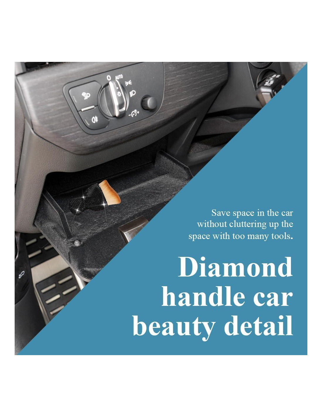 - [Diseño del Mango]: El mango del cepillo de polvo para interior de auto está diseñado ergonómicamente para ajustarse perfectamente a tu palma, permitiéndote limpiar sin resbalar. Además, el mango del cepillo de limpieza de detalle para coche está incrustado con un brillante diamante, haciéndote sentir agradable mientras limpias tu coche