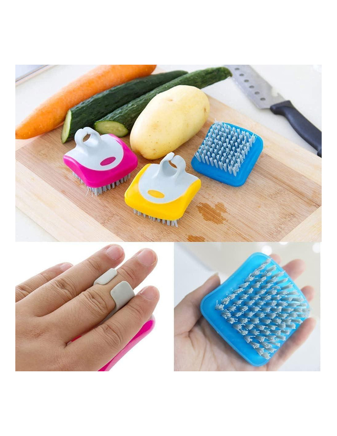 - [Cepillo de Verduras] Ofrecemos una forma rápida y efectiva de limpiar tus verduras. Solo usa el cepillo de verduras para eliminar fácilmente manchas comunes, residuos y contaminantes para resaltar la belleza natural de tus verduras y frutas.