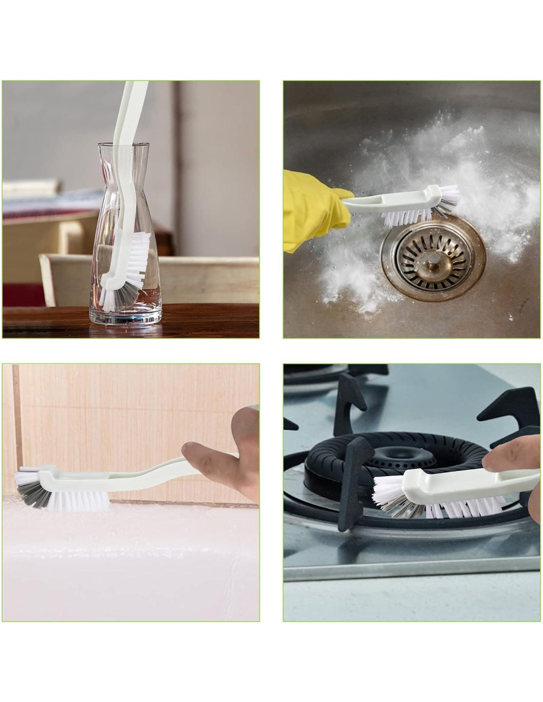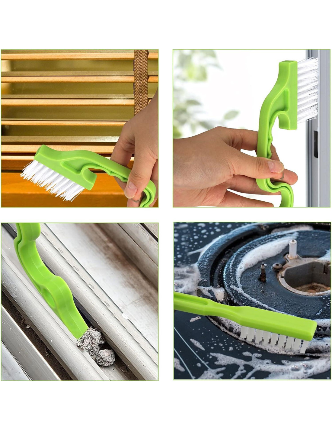 - Cepillo de Limpieza de Ranuras: Cepillo de esquina de ranura 2 en 1, un extremo puede limpiar el riel de la ventana de la puerta y el otro extremo puede recoger escombros. Cepillo de limpieza de doble cabeza de cocina con diferentes colores en ambos extremos te ayuda a distinguir áreas sucias.