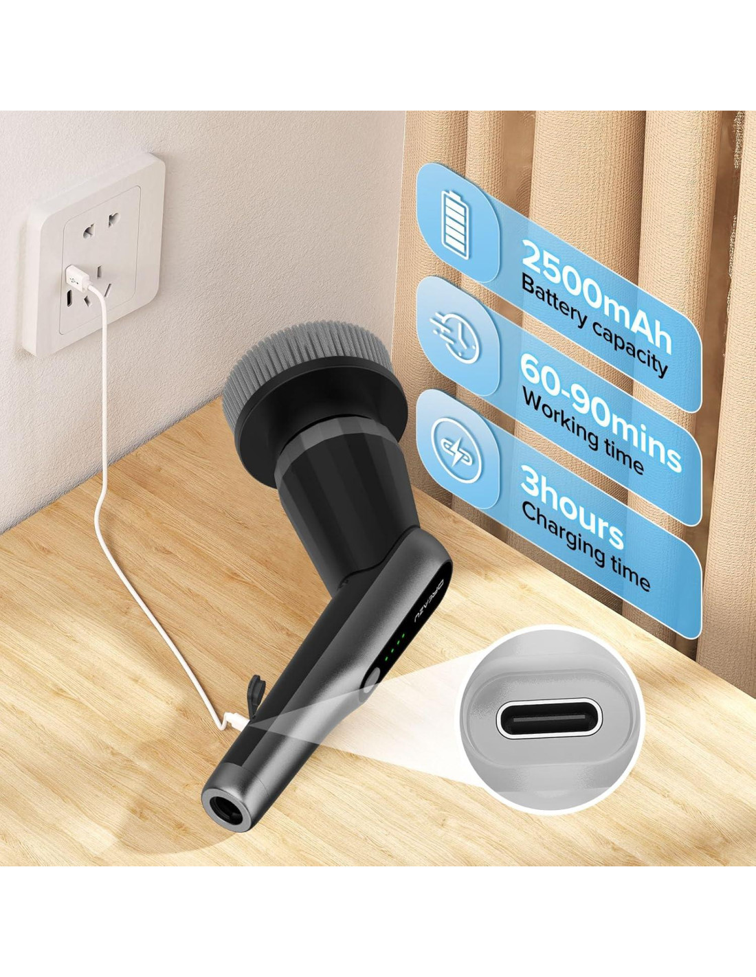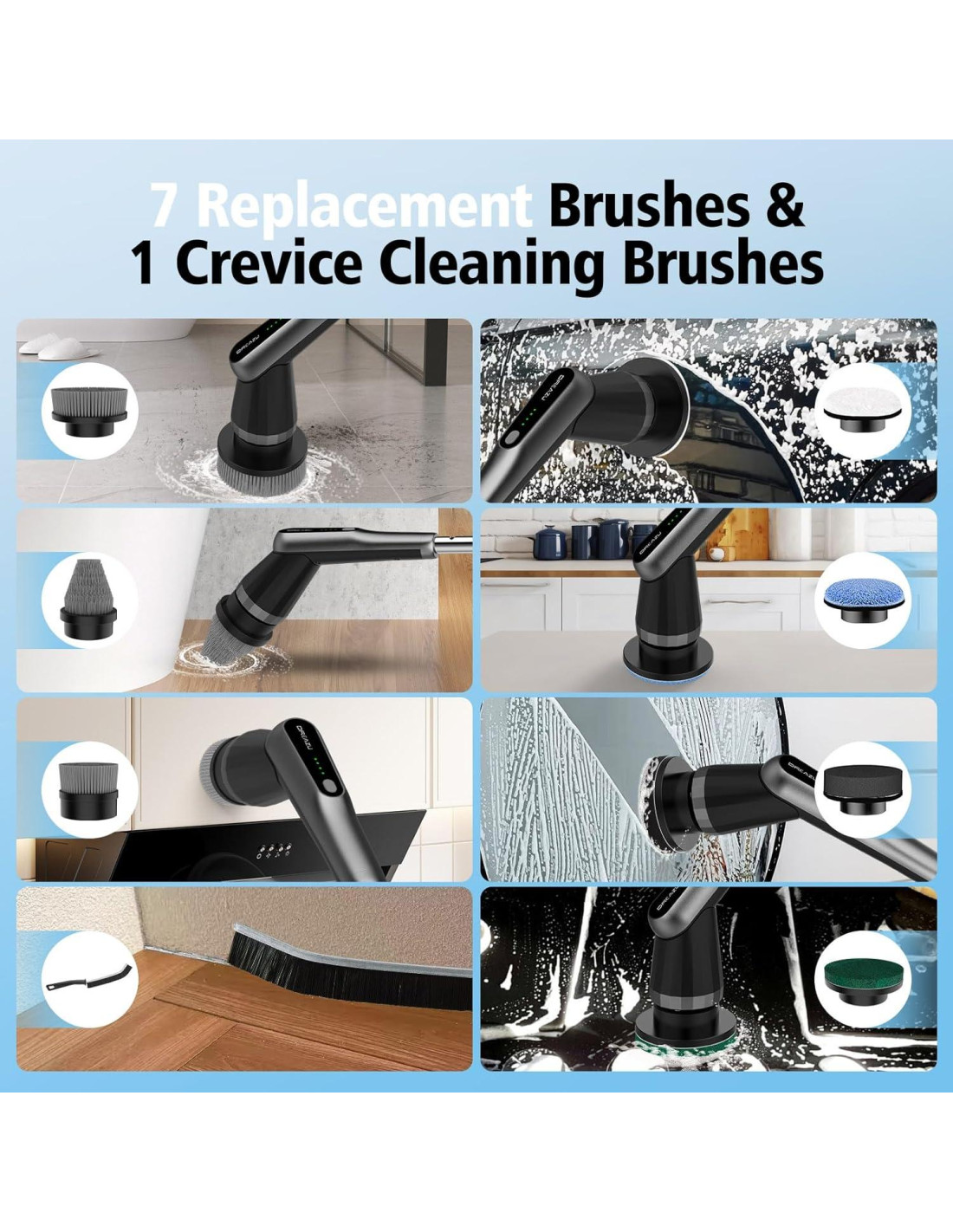 - [Versatilidad 12 en 1 para Cada Superficie] Incluye múltiples cabezales de cepillo intercambiables y accesorios. Ampliamente utilizado para limpiar baños, bañeras, parrillas, paredes, ventanas, platos, fregaderos, rincones, espacios, pisos, vidrio, azulejos, ruedas, interiores de automóviles, cocinas, muebles y estufas. Este cepillo limpiador de ducha y combo de cepillo para baño satisface la mayoría de tus necesidades domésticas. Soporta carga a través de adaptadores Type-C compatibles con teléfonos o tabletas (adaptador no incluido en el paquete).