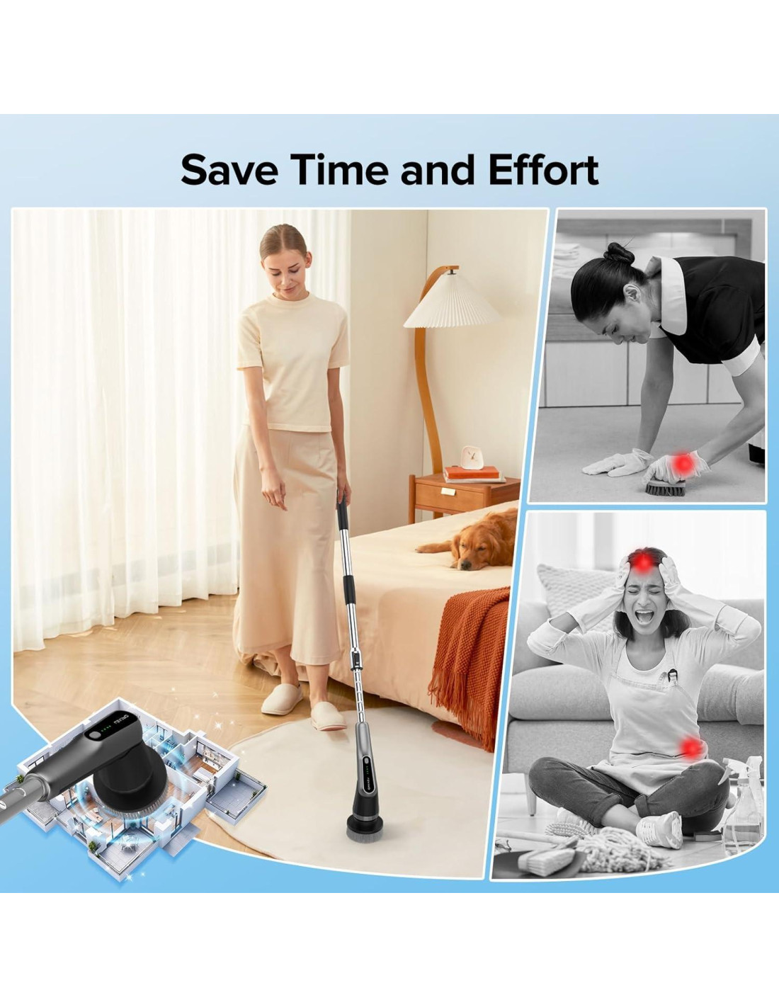 - [El Regalo Definitivo para una Vida Saludable] Puedes usar este cepillo eléctrico para limpiar mientras estás de pie, sin necesidad de arrodillarte en pisos duros, cuidando tu cintura y articulaciones mientras haces las tareas del hogar agradables. Es el regalo perfecto para familiares y amigos. ¡Comienza a disfrutar de la limpieza del hogar juntos ahora!