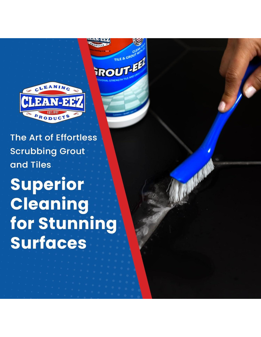 Transforma la limpieza de mundana a placentera y revoluciona tu rutina de cuidado del hogar con el poder de limpieza de Clean-eez. Clean-eez comenzó con una misión de simplificar la limpieza. Como un negocio familiar, creamos Grout-eez para abordar los desafíos en el mantenimiento del hogar, y su éxito transformador nos llevó a expandir nuestra línea para diversas necesidades de limpieza. Nuestra pasión es hacer que la limpieza sea fluida y alegre. Con casi 30 años de experiencia, nos enorgullecemos de crear soluciones innovadoras que convierten tareas desafiantes en rutinas que brindan satisfacción a individuos y familias. No seguimos tendencias, inventamos diariamente para tus desafíos únicos de limpieza, desde superficies delicadas hasta manchas difíciles. Nuestro casi esfuerzo se vierte en cada producto. Conocemos las superficies como nadie más, y