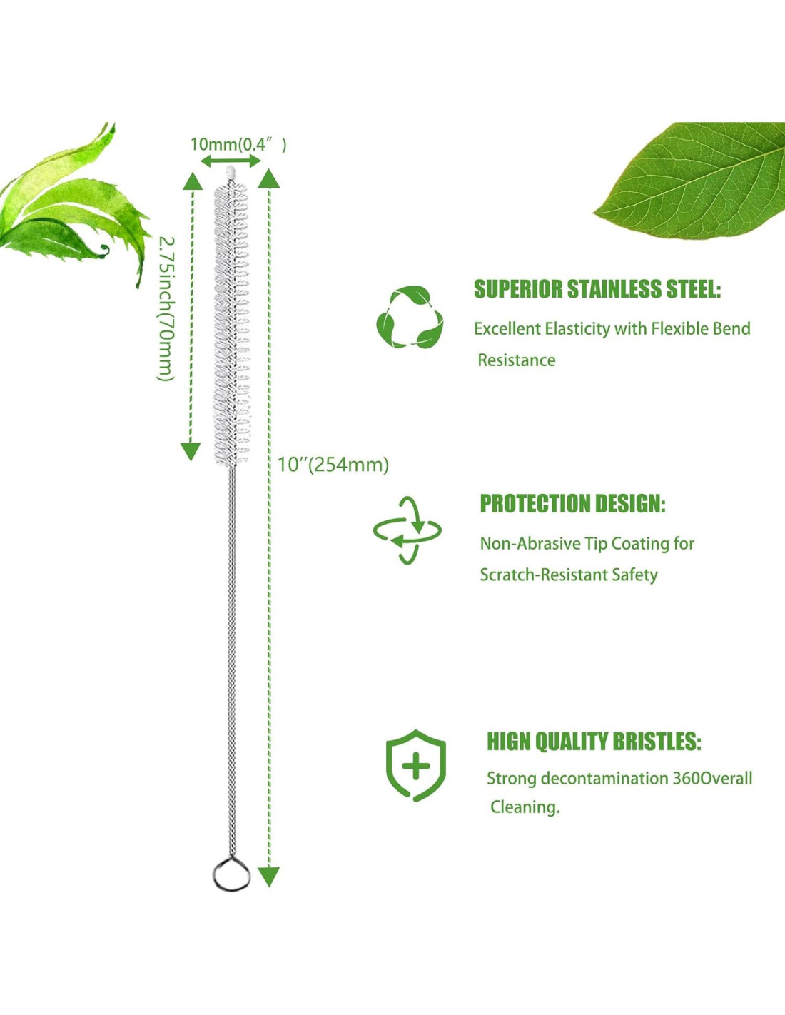 - [Cepillo Limpiador de Popotes Extra Largo Resistente al Calor] Mango extra largo de acero inoxidable 304 soporta inmersión a 60C mientras restaura su forma. Limpia cepillos limpiadores de popotes de metal rígido y cepillos limpiadores de popotes Stanley sin torsión permanente. Supera a las herramientas de limpiadores de tubos y cepillos limpiadores de botellas genéricos - el cepillo definitivo para limpiar popotes.