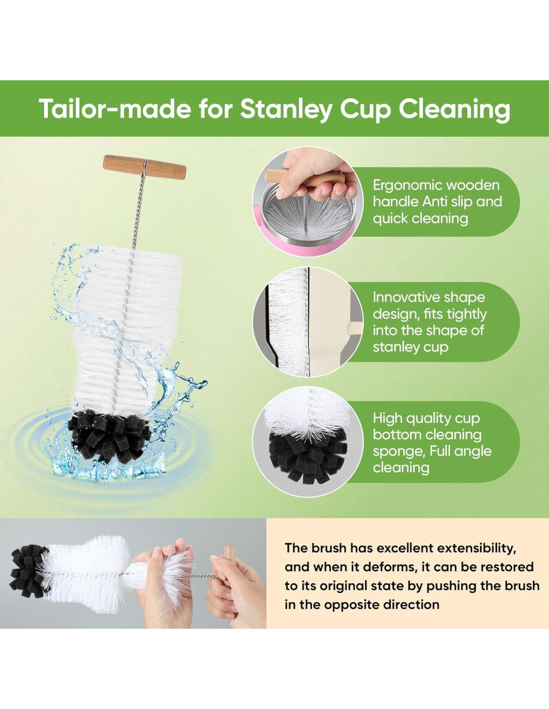 - 2, Diseño innovador de cepillo para botellas: La forma del cepillo de botella largo se adapta perfectamente a la estructura interna de la taza Stanley, lo que permite una limpieza rápida. Además, también es muy adecuado para otras botellas de agua del hogar, biberones, etc.