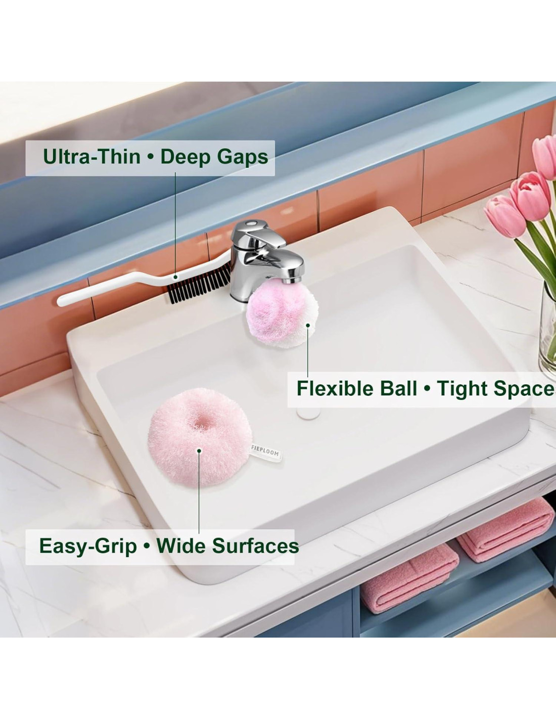 más fuerte que las esponjas, más suave que los cepillos duros - Secado rápido - Más poder - Sin rayones - Brillo pulido Descubre una nueva forma divertida de limpiar: Lavabos, Grifos, Bañeras y Azulejos. Fregaderos, Cocinas, Encimeras, Microondas y otros Electrodomésticos- ¡y hasta deja tus platos y ollas relucientes! Eso es solo el comienzo... ¡descubre usos infinitos! Se mantiene rígido - no se doblará ni deformará Se adapta a espacios de menos de 1cm Limpia en todas las direcciones ¿Para qué se usa este cepillo en forma de dona rosa? Se ve diferente. Piénsalo como una esponja y un cepillo duro combinados en un producto más suave y efectivo, por ejemplo: - Pule lavabos y grifos hasta un brillo - Deja platos y ollas relucientes ...y mucho más! ¿Por qué este cepillo rosa está diseñado en forma de dona/redonda? Agarre ergonómico - Se adapta naturalmente a tu mano Limpieza 360 - Llega a todos los ángulos fácilmente Bonito y funcional - Convierte las tareas en momentos alegres ¿Cómo debo manejar el goteo de agua después de usar? ¡Solo sacude suavemente y cuélgalo para secar! A diferencia de las esponjas, no se necesita escurrir. Las fibras de secado rápido liberan agua naturalmente para mantenerse frescas. Juego de Cepillos de Grietas y Limpieza Cepillo para Bañera/Azulejo que No Raya Cepillo de Limpieza de Pantallas de Ventana Para una Limpieza Completa Conquista espacios reducidos y grietas ocultas. Brillo Sin Rayones Descubre la forma suave pero efectiva de tener un baño brillantemente limpio. Para Pantallas y Más Limpia sin esfuerzo pantallas (ventanas, puertas, porches). Cepillo de Detalle de Precisión Diseño delgado que alcanza espacios estrechos. Cepillo Suave para Todas las Superficies Fibras suaves de alta densidad seguras para todos los acabados. Cerda Dura pero Suave Fibras fuertes para una limpieza profunda, pero suaves para proteger pantallas delicadas.