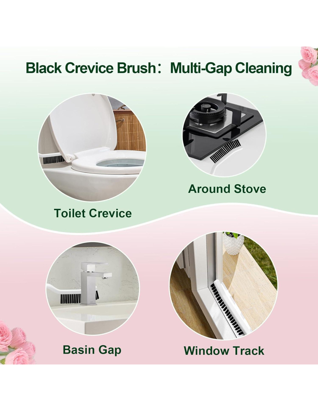 - Cepillos Negros Rígidos - Limpieza Profunda de Grietas: Los 4 cepillos de grietas negros tienen cerdas ultra delgadas de 5mm que se mantienen rígidas bajo presión, con mangos curvados ergonómicos para un fácil acceso a espacios estrechos. Perfectos para limpiar líneas de azulejos y lechada, bases de inodoros, uniones de grifos, espacios entre estufas, rieles de puertas corredizas y otros espacios reducidos.