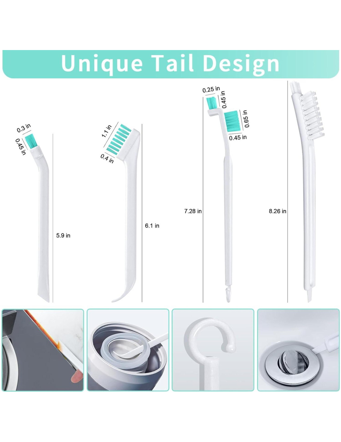 - Diseño Práctico: El cepillo de esquina micro mejorado adopta un diseño de doble cabeza. Su cabeza de cepillo delgada presenta un ángulo de 90 y cerdas pequeñas para alcanzar fácilmente las sucias ranuras. Su gancho en la cola puede quitar fácilmente el anillo de goma y la junta