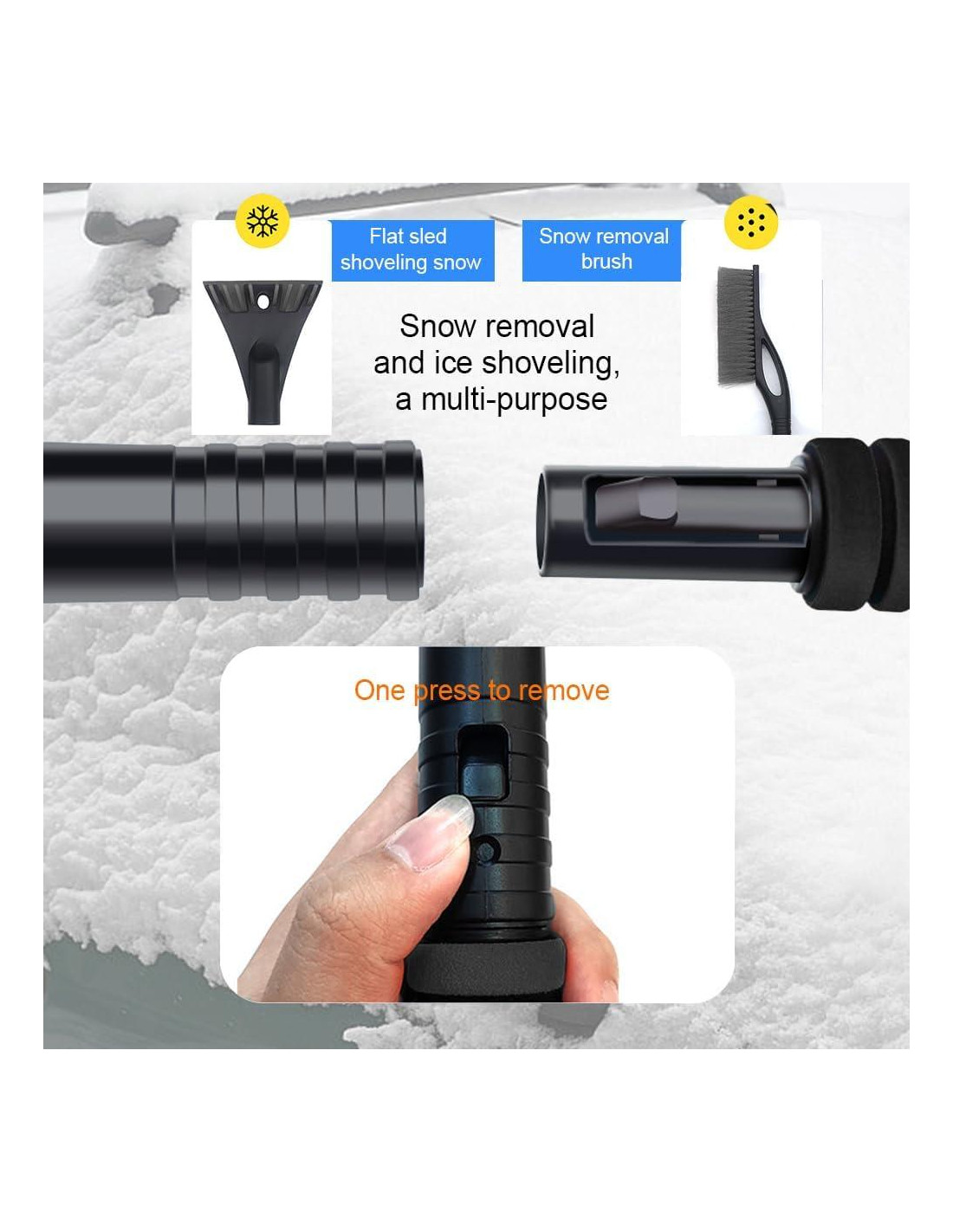 - [Desmontable]: Estas herramientas de eliminación de nieve para coche están diseñadas con un clip de metal que se puede presionar para separar el cepillo de nieve y el raspador de hielo, y puedes usar los dos extremos por separado. También es más fácil de almacenar y llevar sin ocupar demasiado espacio