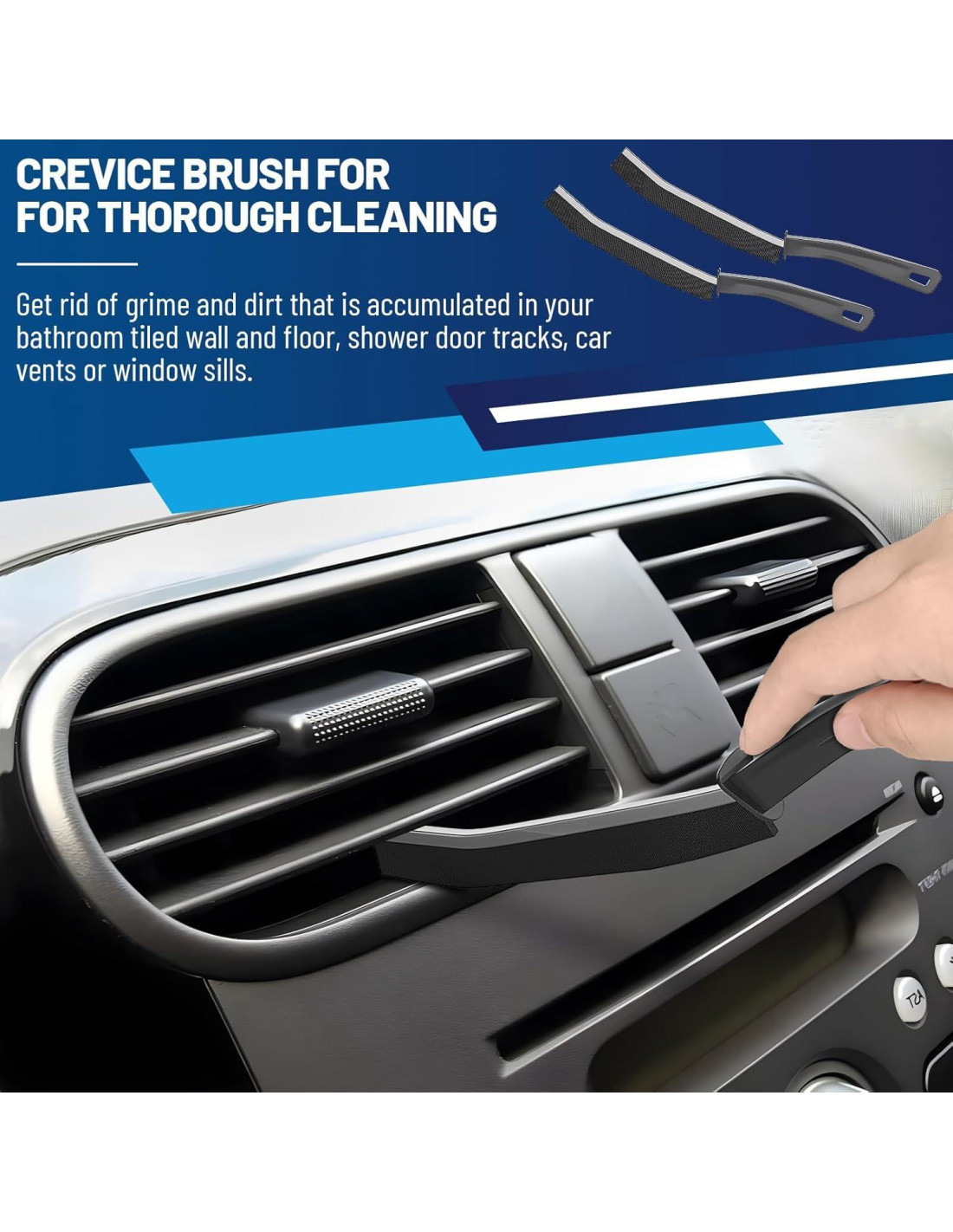 - [Seguro para Cualquier Superficie] Nuestros cepillos de limpieza de grietas son seguros para usar en todo tipo de superficies, incluyendo cerámica, madera dura, piedra, vidrio, granito y cuarcita. Efectivo para limpiar. Grifos de cocina, baño, esquinas, grifos, todas las superficies de azulejos, rieles de puertas de ducha, desagües de fregaderos, hornos y platos giratorios, rieles de puertas corredizas y marcos de ventanas.