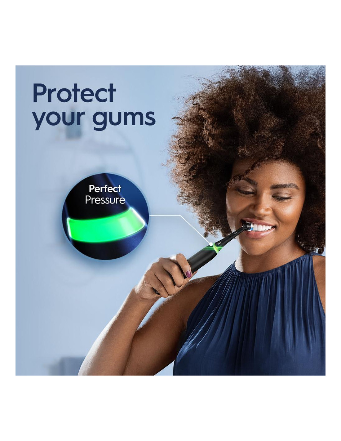- PROTEGE TUS ENCÍAS CON EL SENSOR DE PRESIÓN iO, el único de Oral-B que señala si estás aplicando la PRESIÓN PERFECTA para una limpieza efectiva y segura