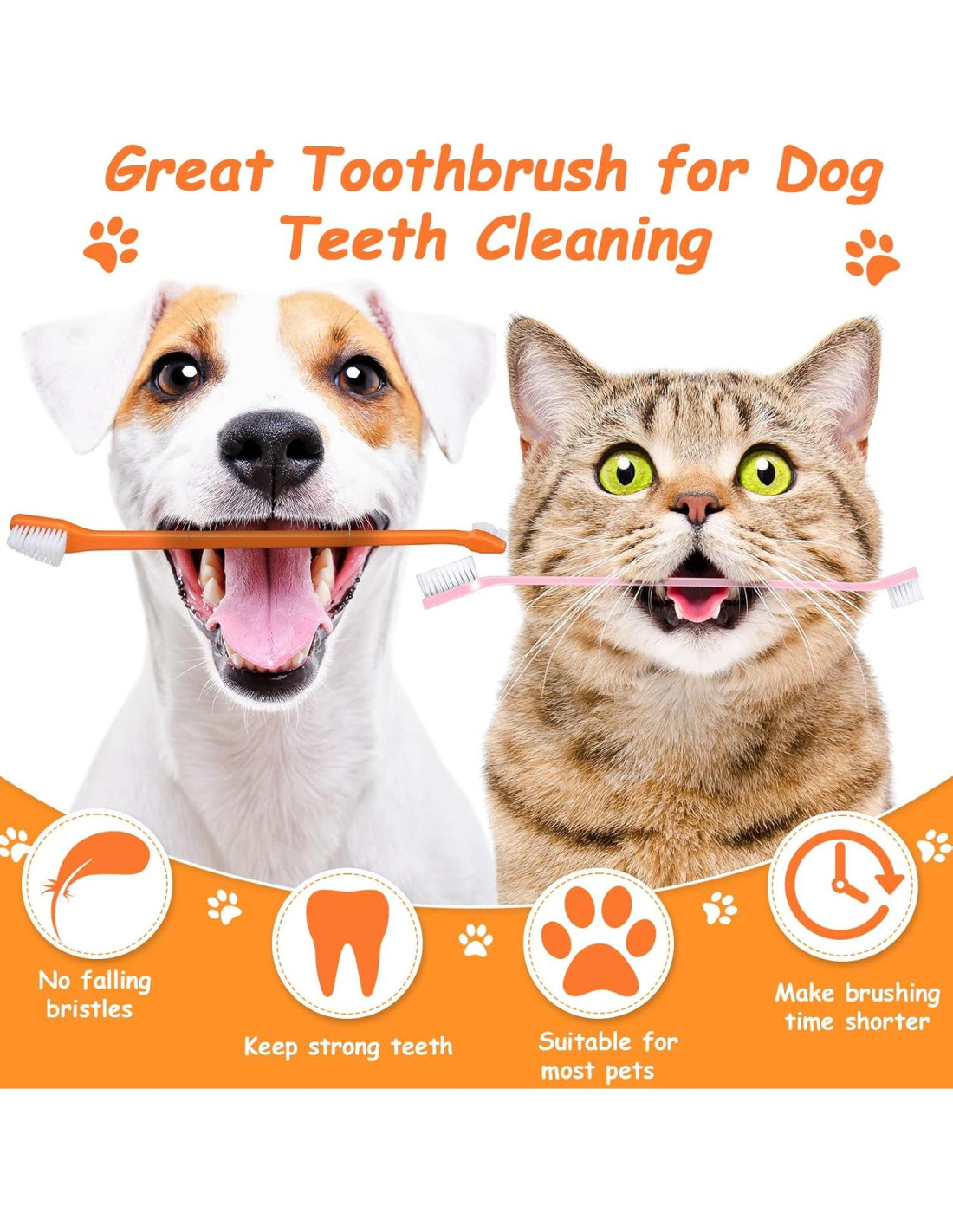 - Adecuado para la mayoría de las mascotas: el cepillo de dientes suave para mascotas adopta un diseño de doble cabeza, con una cabeza de cepillo grande y una pequeña, diferentes tamaños son adecuados para los dientes de diferentes perros, cachorros, gatos u otros animales pequeños, lo que puede ayudarte a completar fácilmente la tarea de limpiar los dientes de tu mascota
