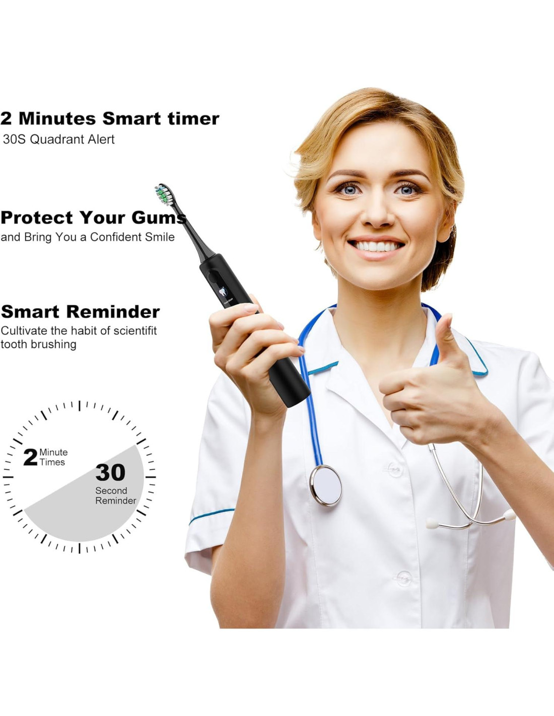 - Temporizador inteligente y recordatorios - Temporizador inteligente incorporado de 2 minutos con recordatorios de cuadrante de 30 segundos ayuda a adultos, adolescentes y niños a construir hábitos recomendados por dentistas.