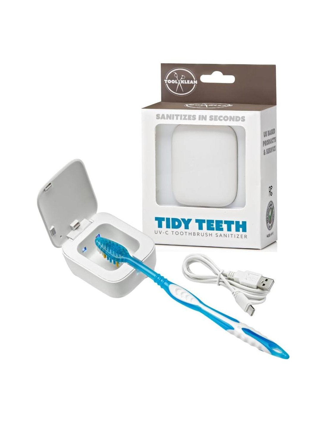 - La Elección de los Consumidores Conscientes de la Seguridad: Mantén tu cepillo de dientes limpio con el Desinfectante de Cepillos de Dientes Tidy Teeth de Tool Klean. El estuche ligero y altamente portátil de 2.5" x 2" x 1.5" (6,35 cm x 5,08 cm x 3,81 cm) se adapta a varias cabezas de cepillo, incluyendo cepillos eléctricos y manuales, asegurados por una abrazadera de silicona ajustable. El dispositivo utiliza una potente luz LED ultravioleta de banda C para ayudar a reducir la presencia de patógenos.