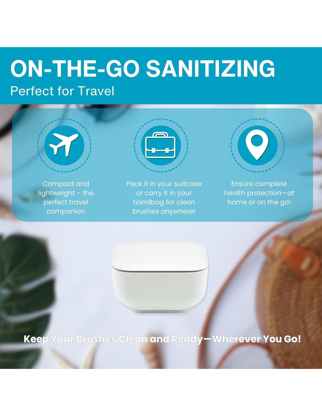 - Protégete en Casa y Mientras Viajas: Usa el estuche en casa o en el trabajo colocándolo en una encimera de baño, en un gabinete o cajón, o montándolo en la pared. Para viajar, empácalo con tus artículos de tocador. Ya sea en casa o en movimiento, puedes tener la tranquilidad de saber que tu cepillo de dientes está limpio después de cada uso. El interruptor de apagado automático de seguridad previene la exposición accidental a los UV cuando la tapa está abierta.