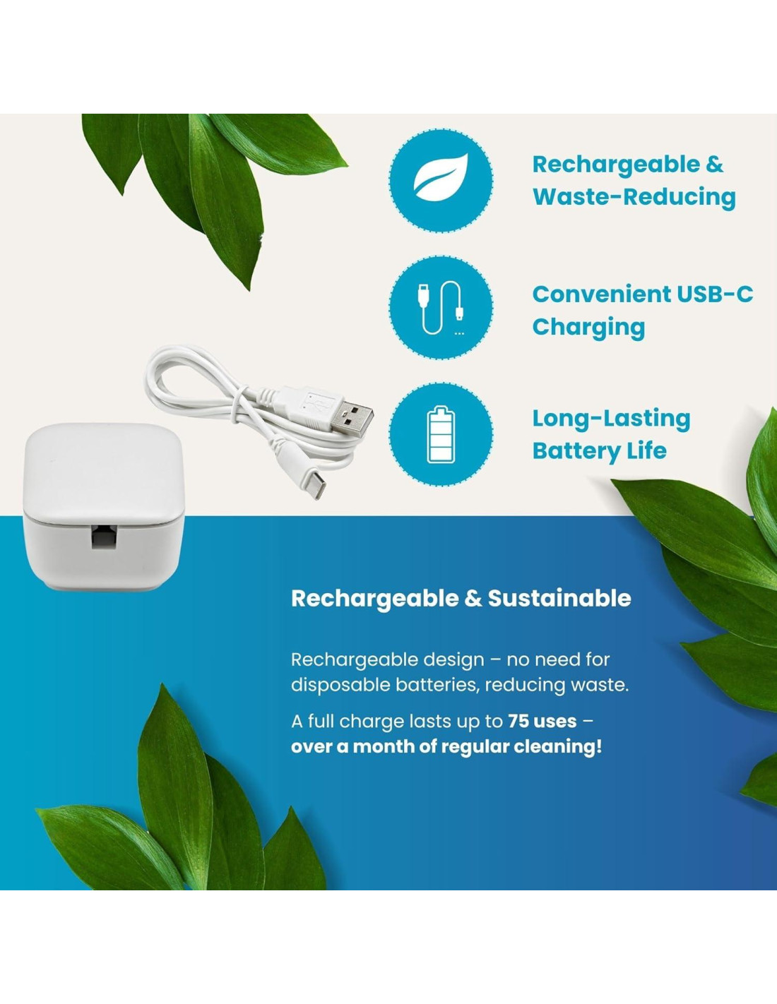 - Mantener tu Cepillo de Dientes Limpio Debería Ser Fácil: Después de cepillarte, coloca tu cepillo de dientes en el estuche, cierra la tapa y deja que la luz UV-C haga su trabajo. En solo 1 minuto, tu cepillo de dientes está desinfectado. La luz se apaga automáticamente después de que el ciclo se completa. Este dispositivo es libre de ozono y está diseñado para la conveniencia. La batería de iones de litio recargable incorporada se carga rápidamente en 2 horas y dura aproximadamente 75 ciclos de limpieza, aproximadamente un mes de uso normal.