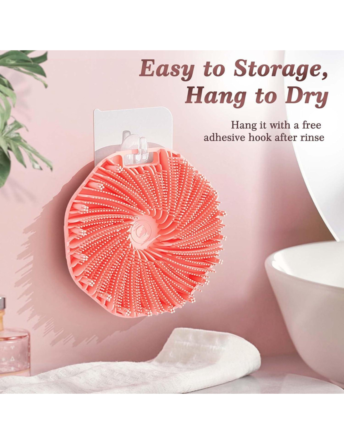 - [Fácil de Limpiar e Higiénico] El material de silicona es fácil de limpiar, de secado rápido y no es fácil de producir bacterias. Solo necesitas enjuagarlo con agua. El paquete incluye: exfoliante facial de silicona x1, Exfoliante Corporal x1, un gancho adhesivo x1.