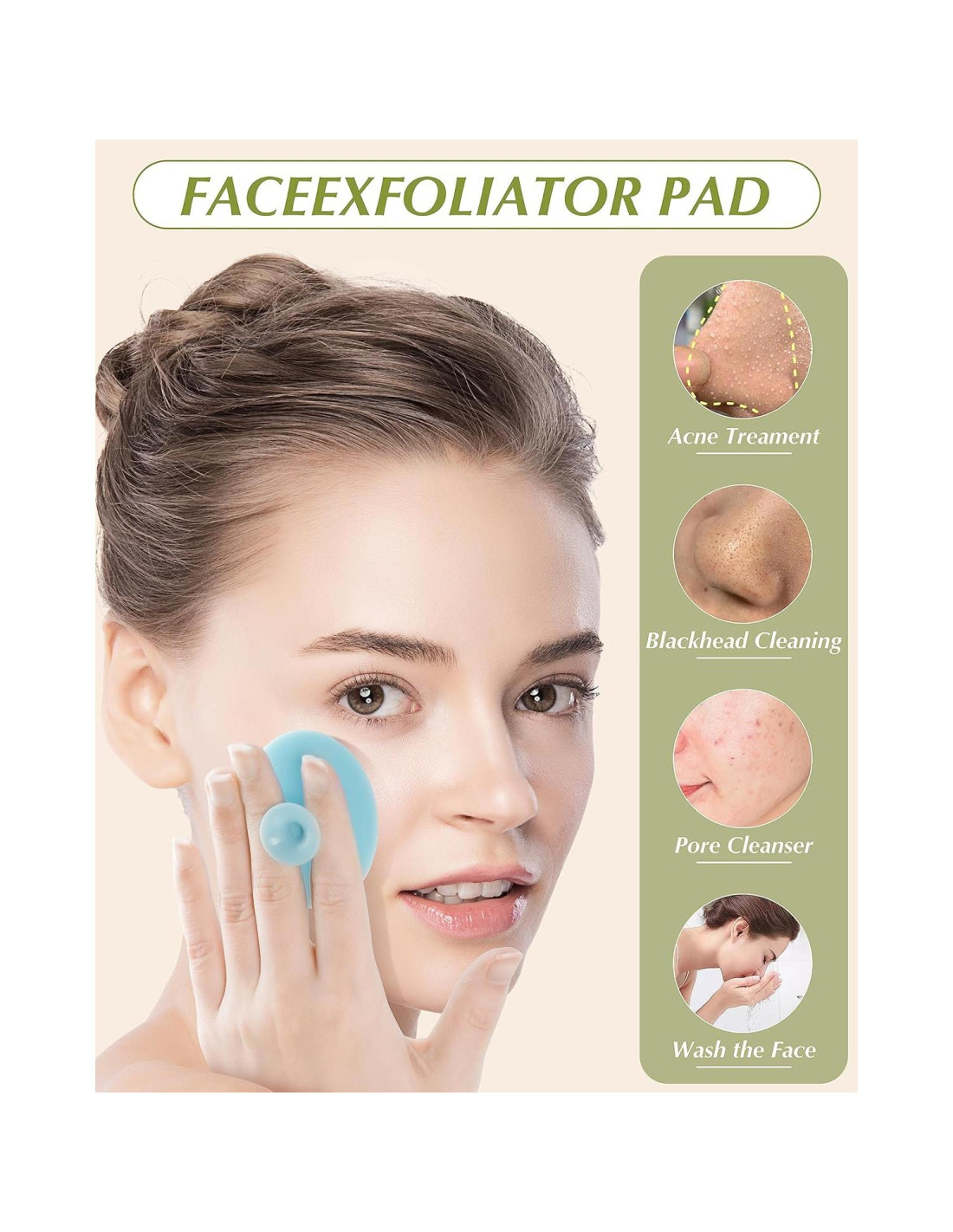 - Almohadilla Exfoliante Facial: El exfoliador facial de silicona se puede usar para tratamiento de acné, limpieza de puntos negros, limpieza de poros y lavado de la cara para un aspecto más limpio