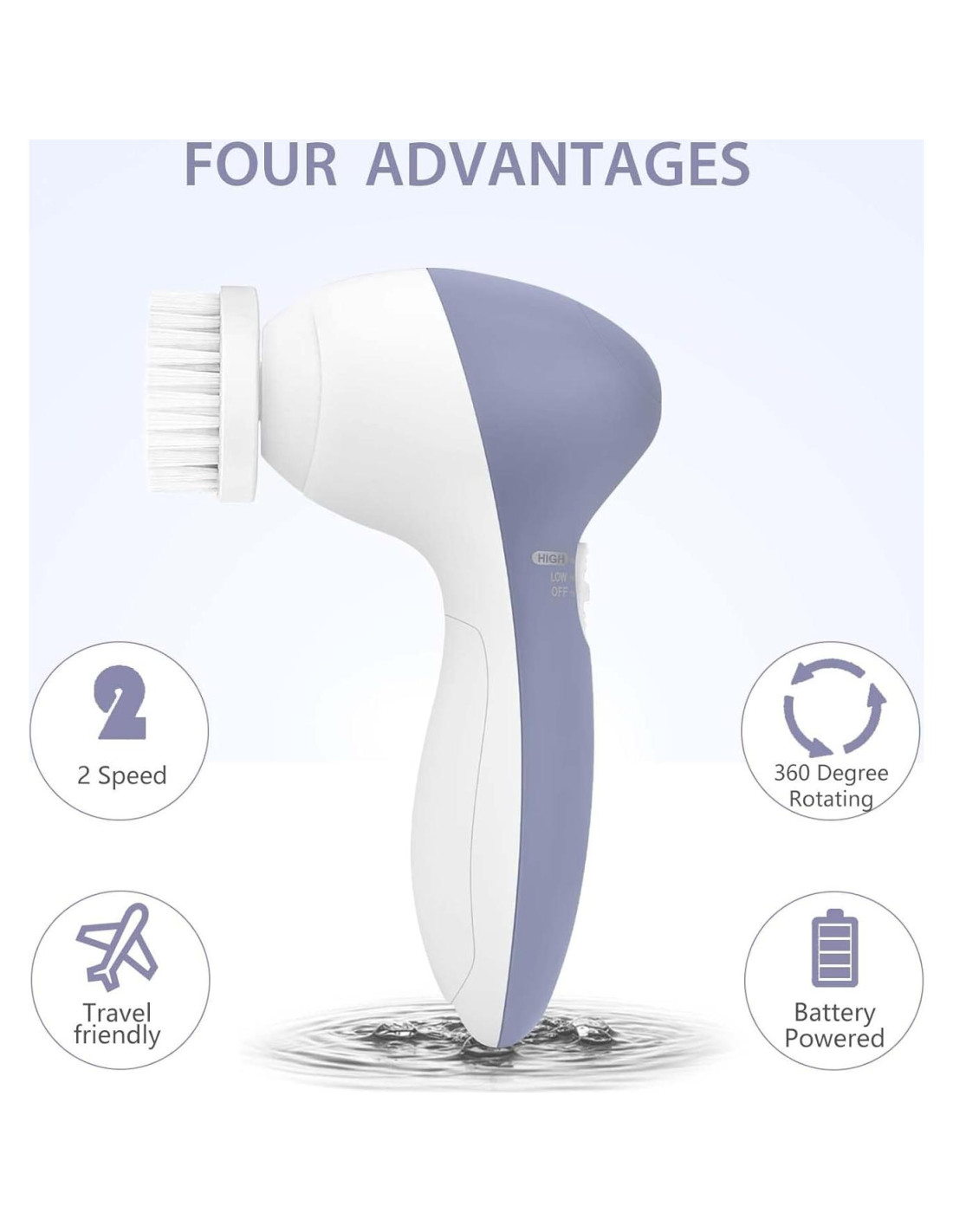 - KIT DE LIMPIEZA FACIAL INCLUYE - 6 cabezales de cepillo reemplazables: Dos cepillos pequeños para limpieza suave diaria, cabeza de esponja, cabeza de látex, una cabeza de cepillo de silicona y una cabeza de masaje rodante para masajear puntos de acupuntura.