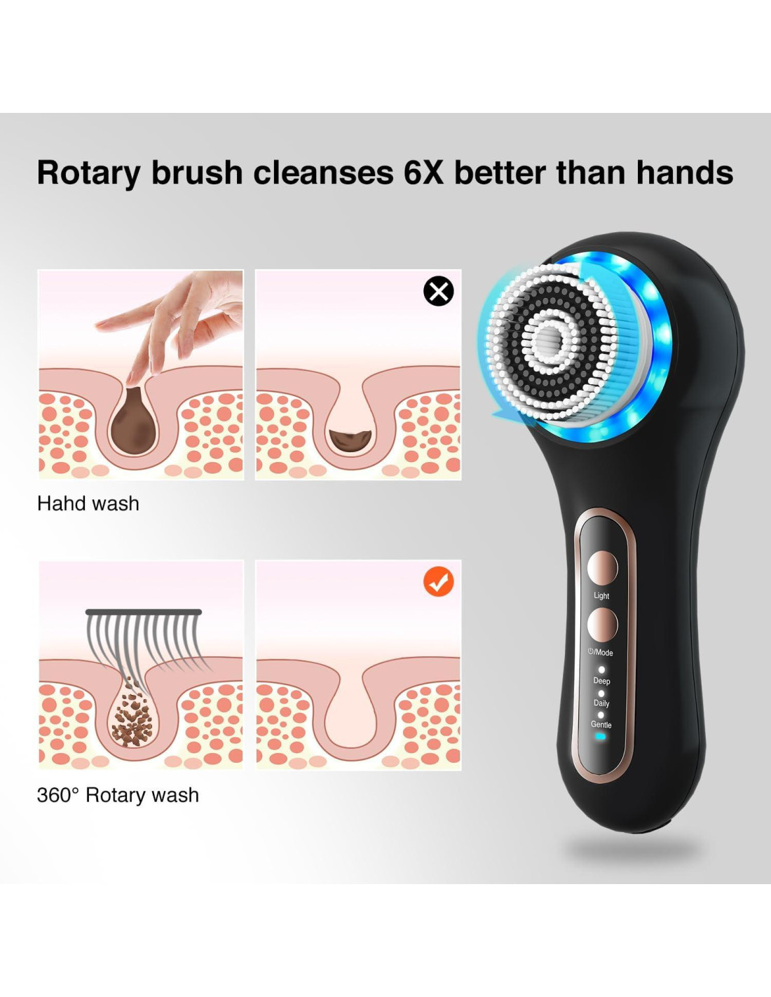 - SISTEMA DE CEPILLO DE LIMPIEZA FACIAL 3 EN 1: Incluye 5 cabezas de cepillo, 3 velocidades de limpieza (profunda, diaria y suave) para tu elección de limpieza suave a exfoliación profunda. Elimina eficazmente la suciedad, el aceite y el maquillaje de la superficie de la piel, y tensa/tonifica incluso la piel más delicada.