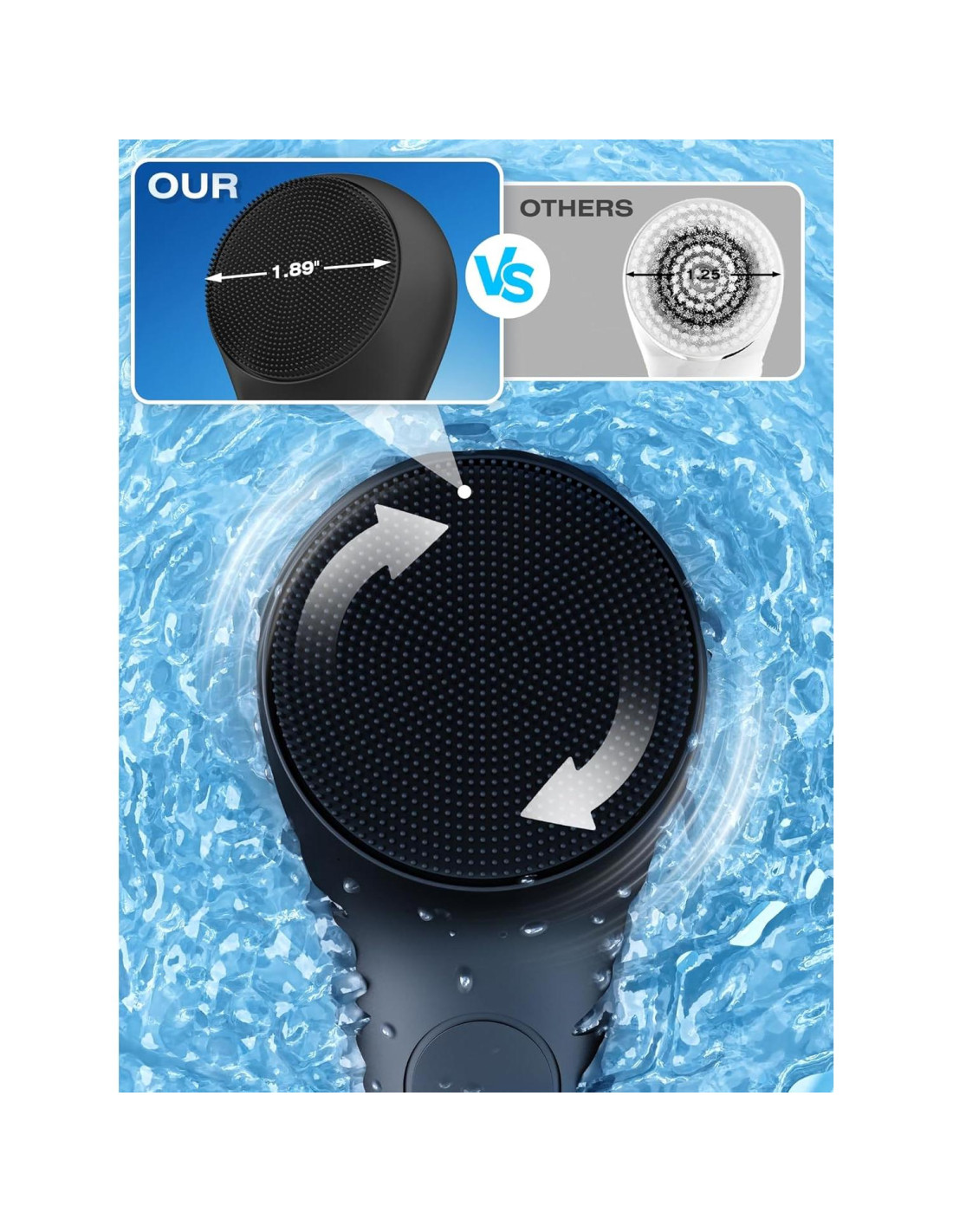 - Modo Fiesta 2-en-1 + Zona de Brillo XXL: El Cepillo Facial Eléctrico combina Rotación de 360 y Tecnología de Masaje para una exfoliación profunda. La cabeza de cepillo eléctrico de silicona XXL elimina el 99% de aceite, suciedad y puntos negros - 10 veces mejor que el lavado manual. La espuma automática crea una rica espuma al instante.