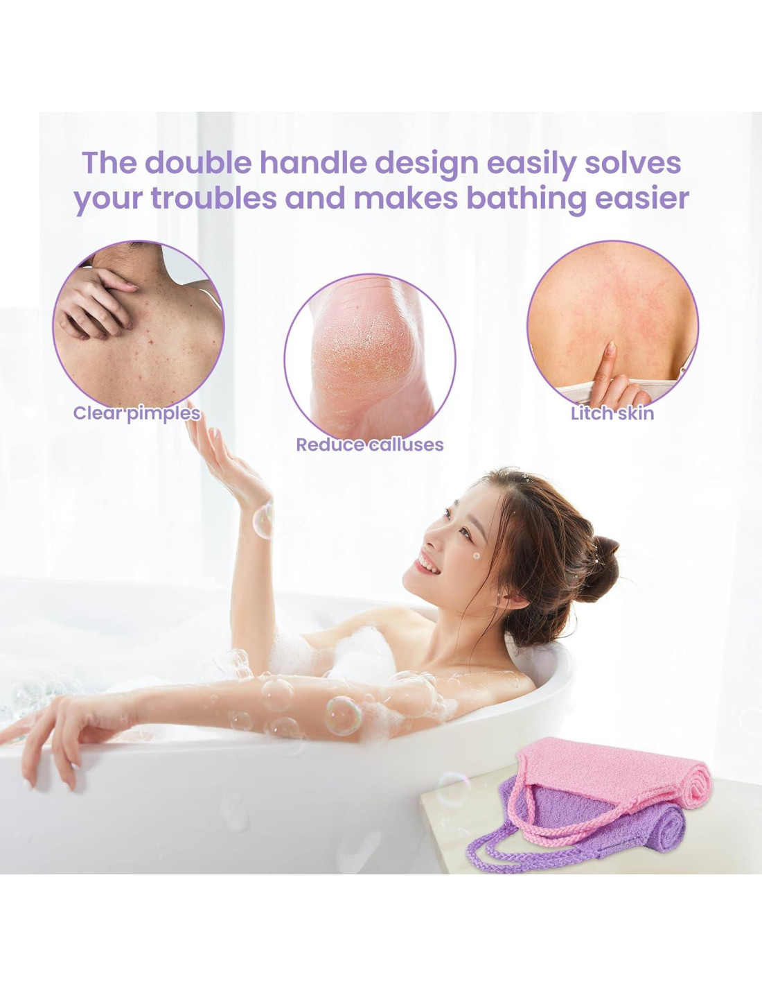 - Versátil Exfoliador de Espalda Este Exfoliador de Espalda tiene una textura áspera en ambos lados, diseñado para la piel de la espalda. La superficie rugosa se utiliza para una eliminación más profunda de la suciedad, piel muerta, etc. Perfecto para exfoliar y no irritar, sin dañar la piel. Combinado con los mangos en ambos extremos, el exfoliador corporal se estira fácilmente para alcanzar la espalda, los hombros y las áreas lumbares para ayudar a enjuagar fácilmente la suciedad.