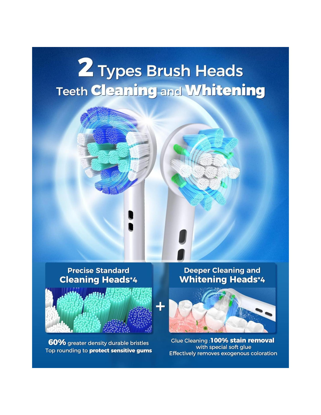 - [Cabezales de cepillo de reemplazo Dual Clean Profesional] El cabezal de cepillo de reemplazo Dual Clean tiene 2 tipos de cabezales de cepillo para una limpieza integral. Un cabezal con sección de pegamento suave especial limpia eficazmente la coloración exógena para blanquear los dientes, mientras que el otro cabezal con cerdas duraderas de 60% mayor densidad proporciona limpieza profunda y eliminación de manchas en los dientes del 30%. La acción dual proporciona una limpieza superior.