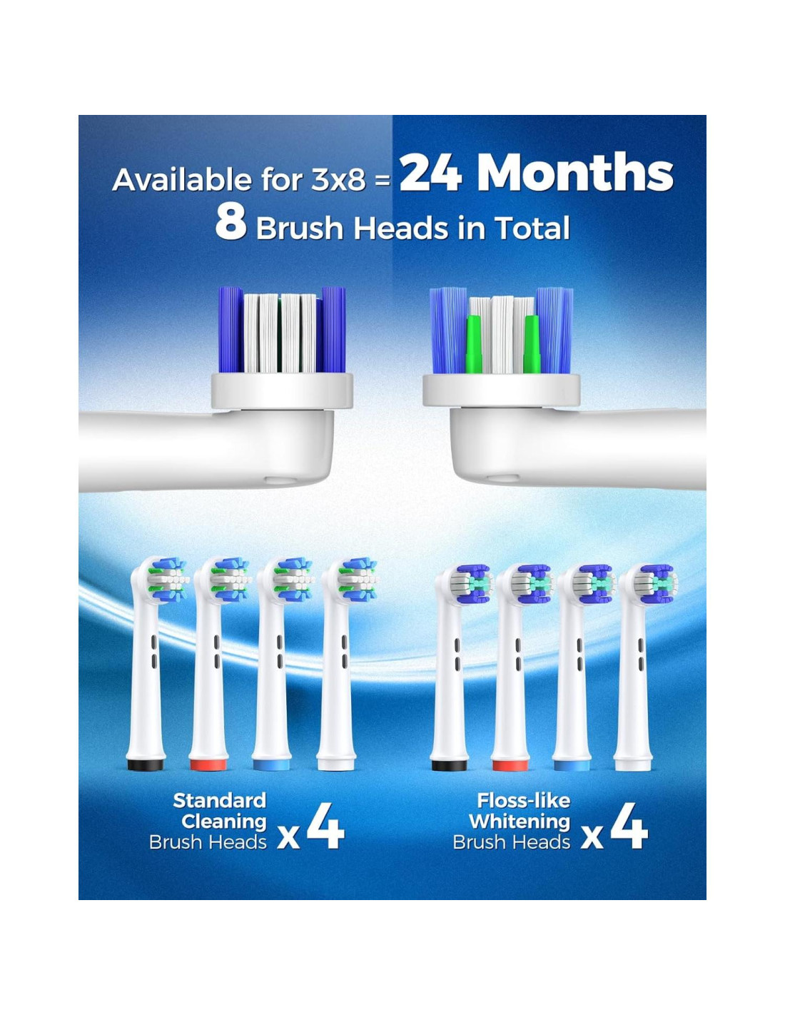- [8 Cabezales de Cepillo de Reemplazo Duran 2 Años] El cepillo de dientes eléctrico rotativo TEETHEORY viene con 8 cabezales de cepillo DuPont, que puedes usar durante 2 años. Puedes compartir un cepillo de dientes, y diferentes colores de anillos se pueden usar para distinguir los cabezales de cepillo de diferentes miembros de la familia. Sabrás que es hora de cambiar el cabezal del cepillo.