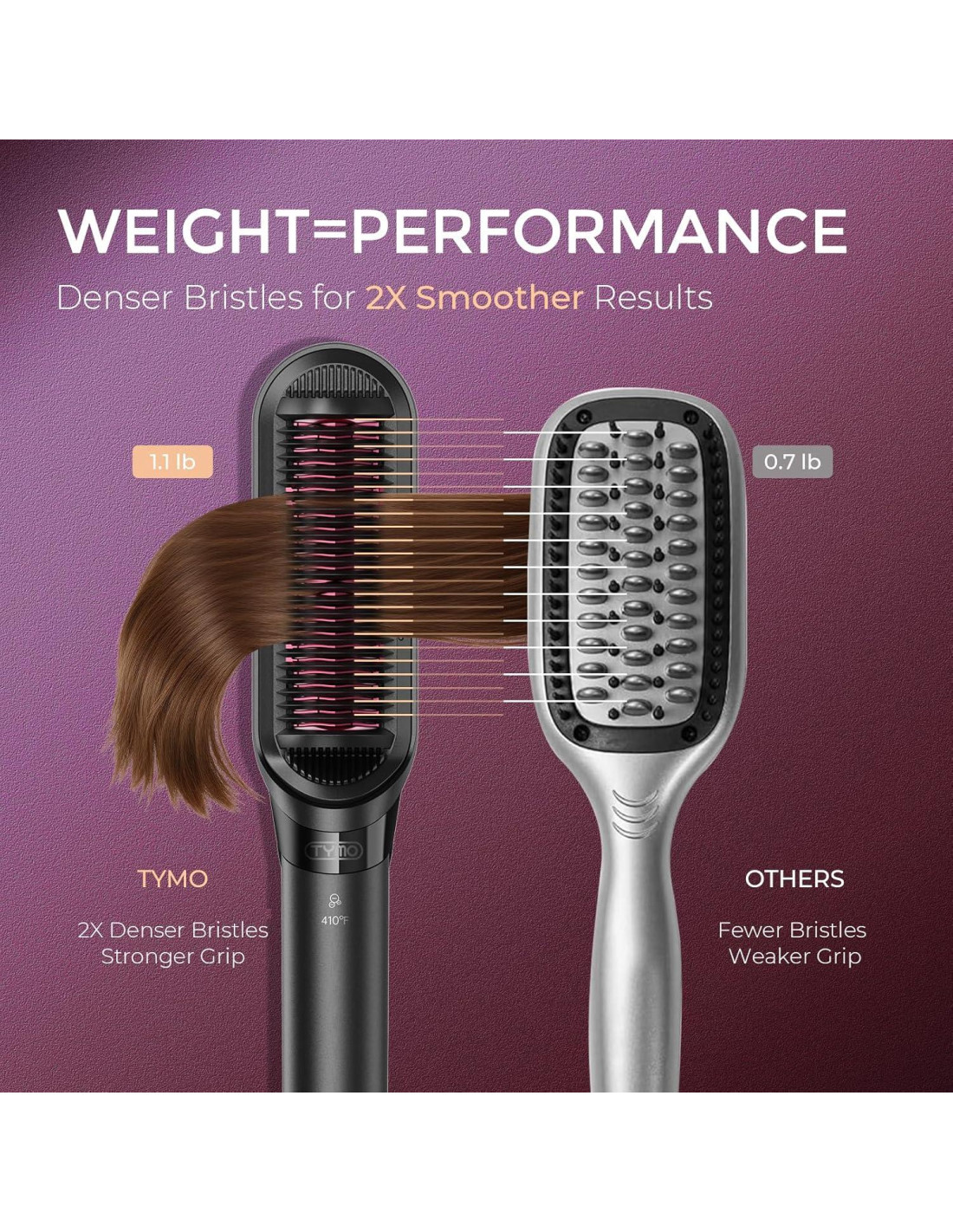 - 200M IONES - Con tecnología de 200M iones negativos, el cepillo alisador de cabello TYMO logra un 86% más de suavidad y una reducción del 96% del encrespamiento mientras retiene 2x más humedad en comparación con otros alisadores.