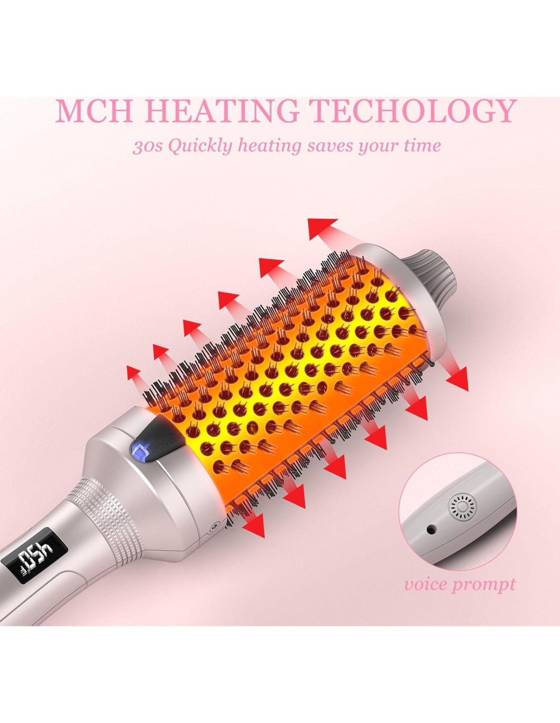 - Hasta un 50% de cabello más suave: nuestro cepillo redondo calentado acariciará cada hebra de tu cabello con iones negativos, bloqueando la humedad y haciendo que tu cabello sea más suave, reduciendo el frizz y los enredos. Te permite crear rizos suaves y duraderos sin esfuerzo