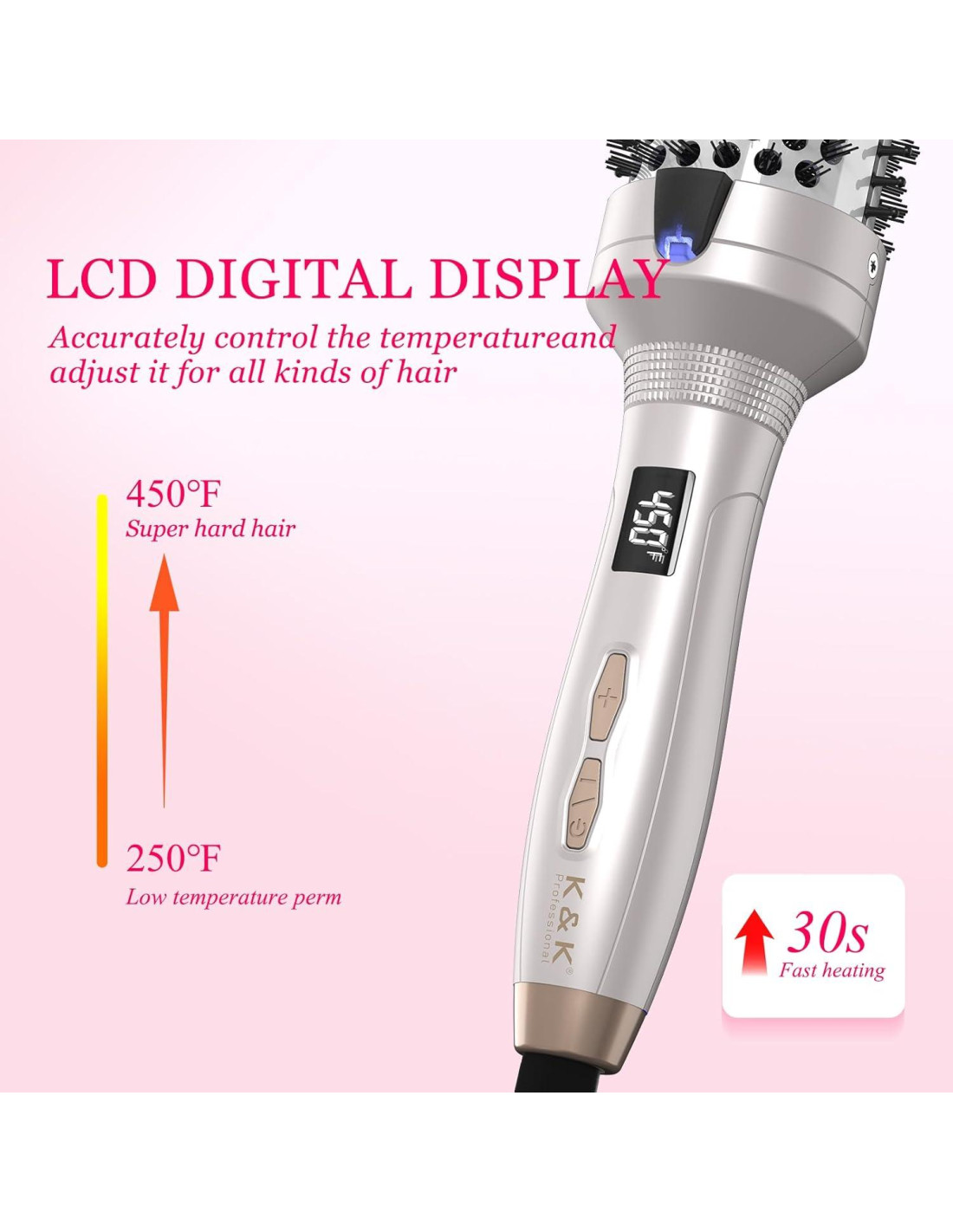 - CALOR NO DAÑINO DE 350 GRADOS El cepillo calentado K&K es seguro para uso diario y nunca freirá tu cabello, a diferencia de un rizador de 400 grados innecesariamente caliente.