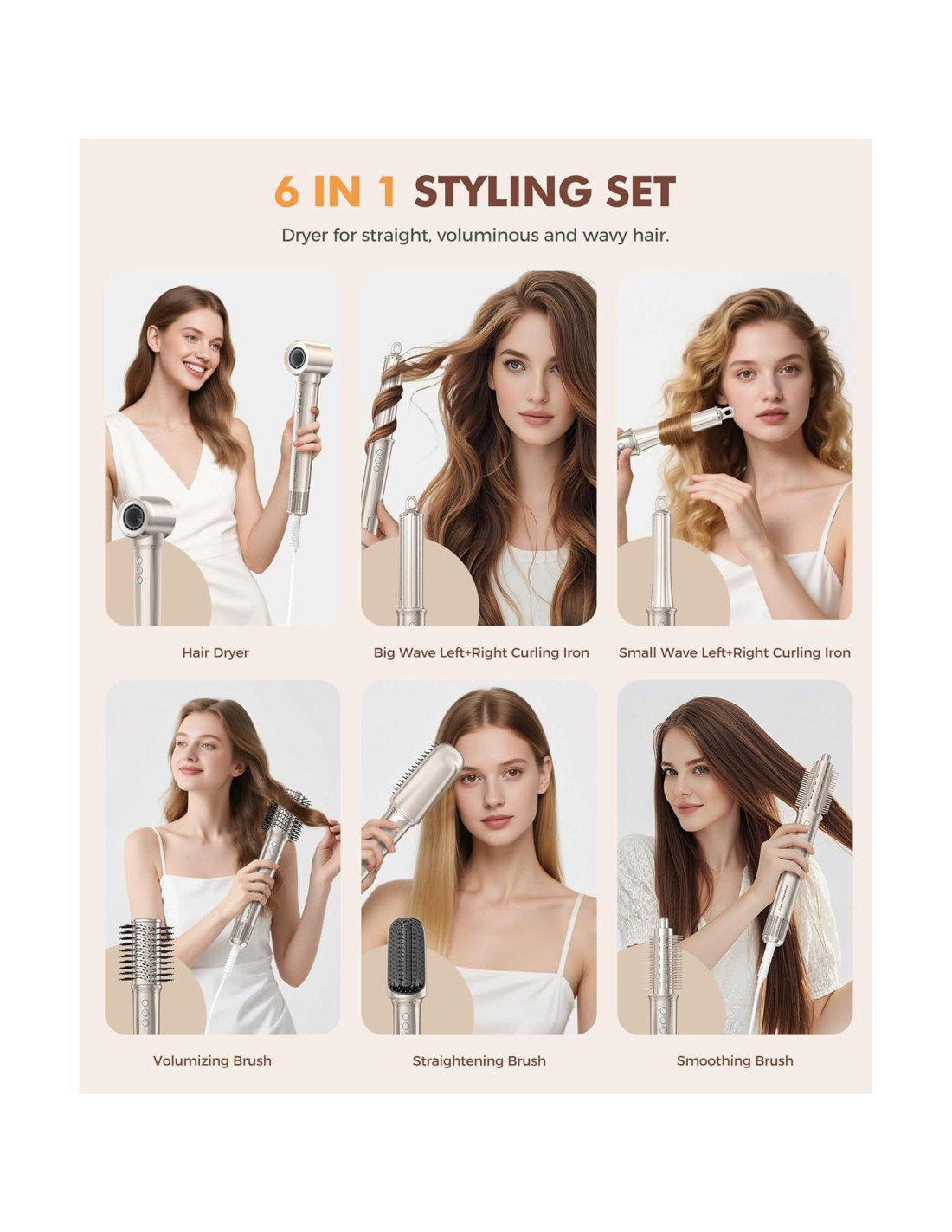 - Solución de Cuidado de Aire 6 en 1: El estilizador de cabello automático 6 en 1 de Cosy Companions combina un cepillo secador de cabello, cepillo ovalado, cepillo redondo, rulos automáticos bidireccionales grandes y pequeños, y alisador de cabello para secar, rizar, alisar, voluminizar, fijar y texturizar. Alimentado por un motor sin escobillas de ultra alta velocidad de 150,000 RPM y un flujo de aire de nivel huracán de 36 m/s, seca el cabello en 2-5 minutos mientras estiliza.