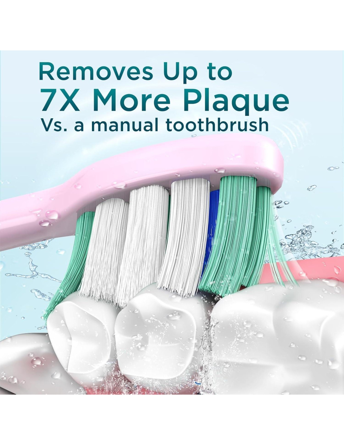 - Limpieza Superior y Encías Más Saludables - Hasta 40,000 VPM cepillo de dientes sónico de alta vibración. Elimina hasta el 99.99% de placa y manchas para una limpieza profunda a lo largo de la línea de las encías y entre los dientes. Con lados flexibles suaves, las cerdas se adaptan a la forma de la superficie de cada diente para proporcionar 4 veces más contacto superficial y eliminar hasta 10 veces más placa de áreas de difícil acceso para una limpieza profunda.
