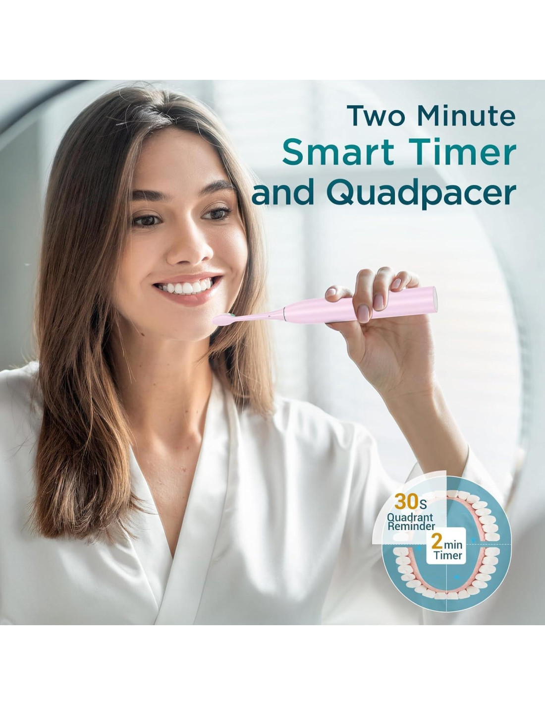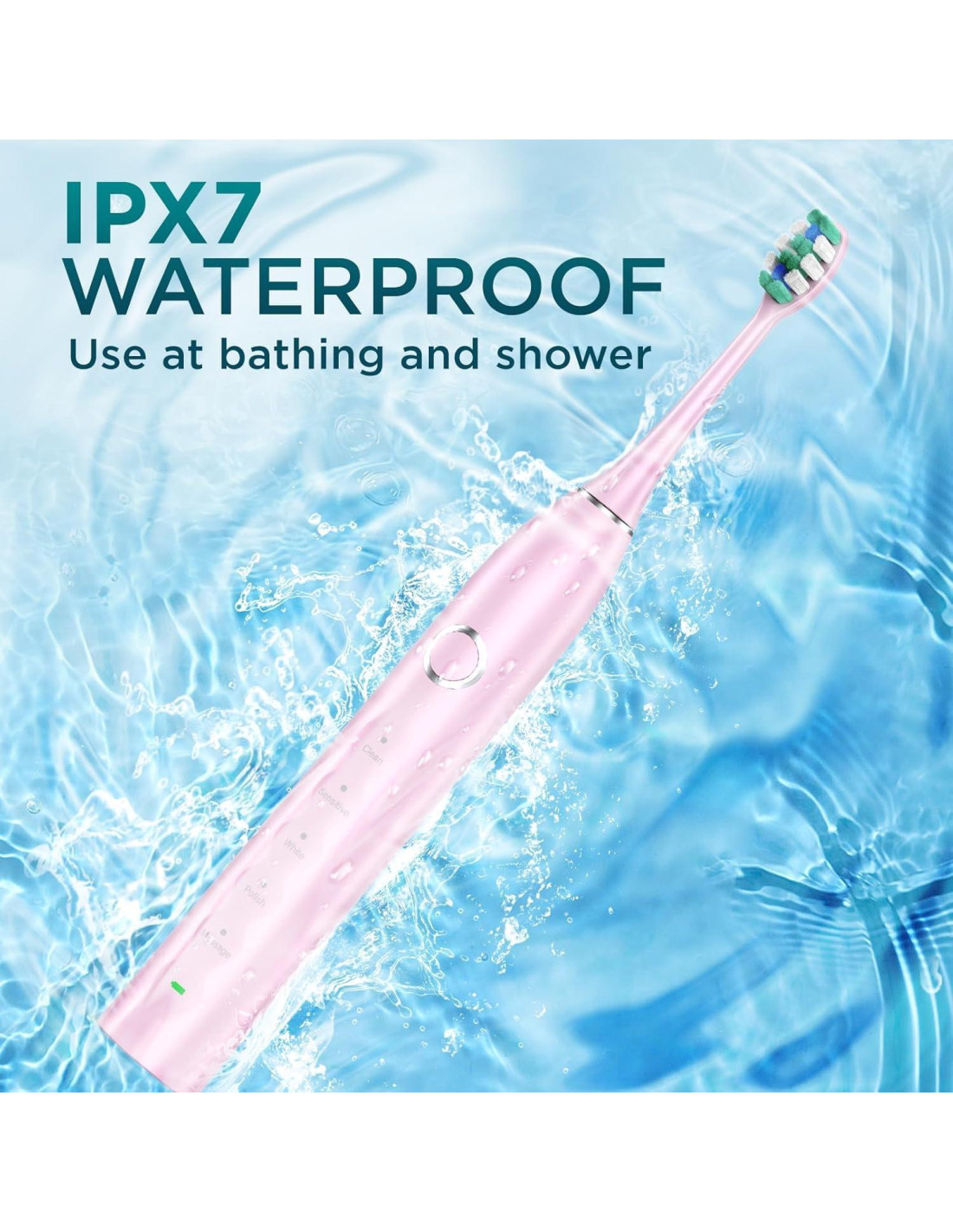 - Temporizador de 2 Minutos y Resistente al Agua IPX7 - Control de temporizador inteligente incorporado, intervalos de 30 segundos recordándote que te muevas al siguiente cuadrante de tu boca, y un total de 2 minutos, 4 cuadrantes. La función de recordatorio asegura un tiempo de cepillado científicamente recomendado. Diseño resistente al agua IPX7 Siéntete libre de usar tu cepillo de dientes eléctrico de forma segura en la ducha o baño.