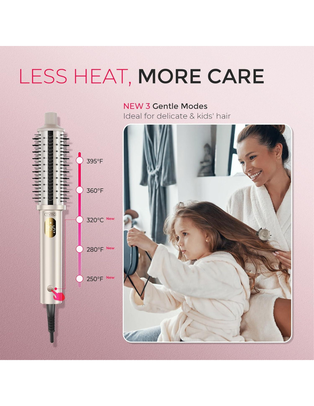 - 5 CONFIGURACIONES DE TEMPERATURA Y PANTALLA EN TIEMPO REAL - Este cepillo rizador térmico tiene 5 configuraciones de temperatura (250F-395F). Personaliza de manera segura el calor para cabello fino o grueso, sin quemaduras. Pantalla de temperatura precisa en lugar de la configuración borrosa tradicional. También tiene memoria de temperatura, sin necesidad de reiniciar la próxima vez. Este cepillo de alisado térmico se apagará automáticamente después de 30 minutos y emitirá un sonido de zumbido cuando el calentamiento esté completo. NOTA: Comienza en la configuración más baja (250F) para encontrar tu calor perfecto para cabello fino/grueso/largo/corto.