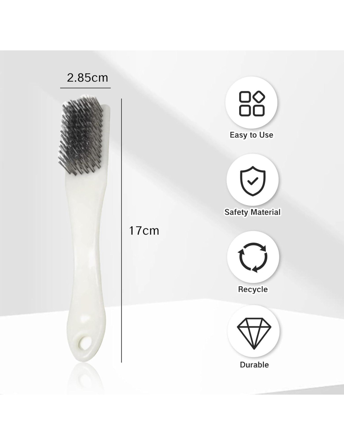 - Diseño Compacto y Robusto: Midiendo 6.3 x 1.2 x 1 pulgadas (16.0 x 3.0 x 2.5 cm), este cepillo para zapatos es compacto y duradero, lo que facilita su transporte y uso cuando sea necesario