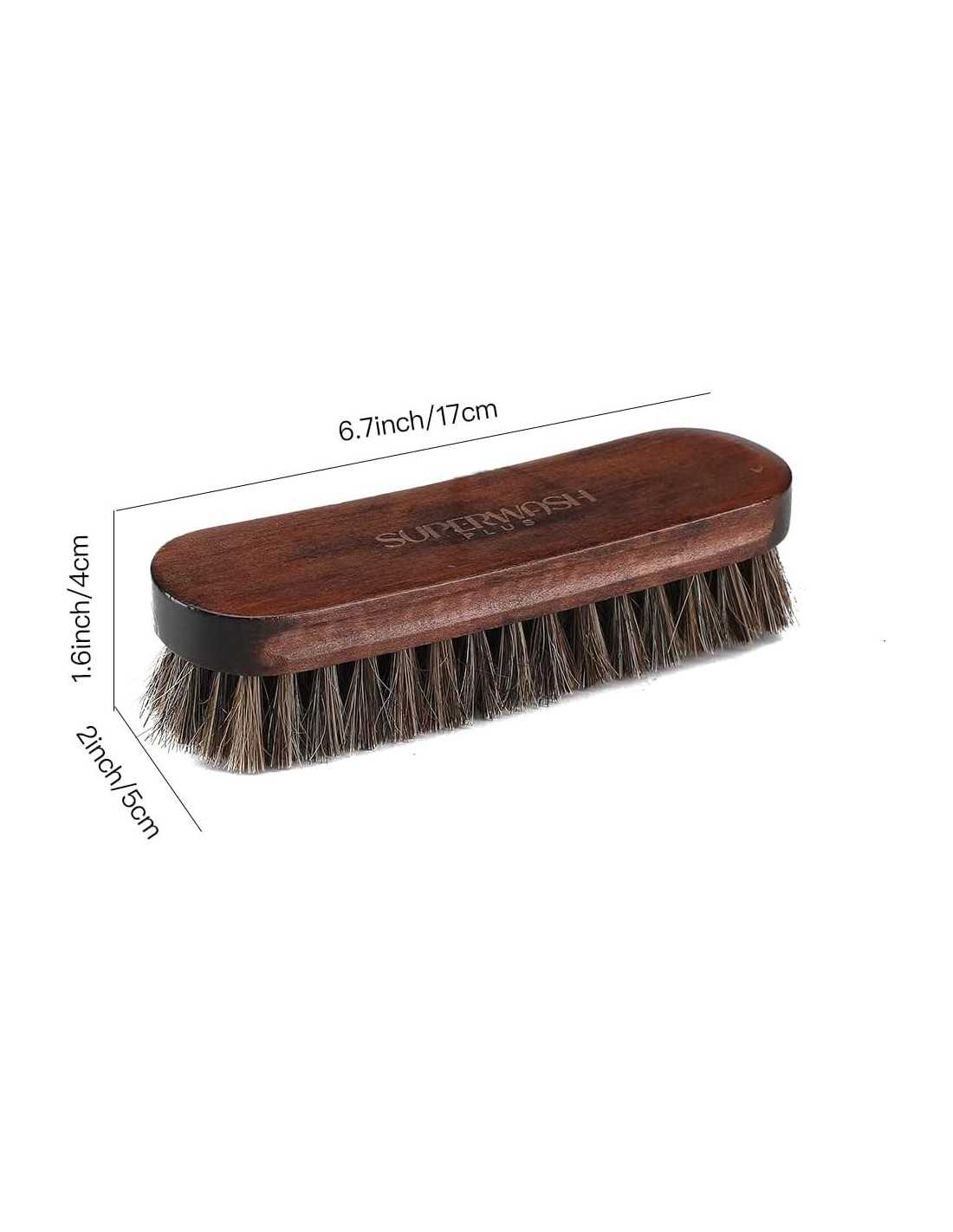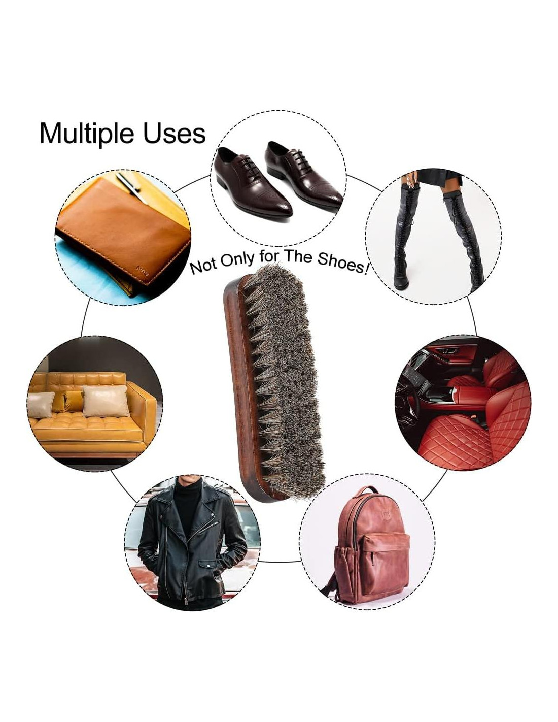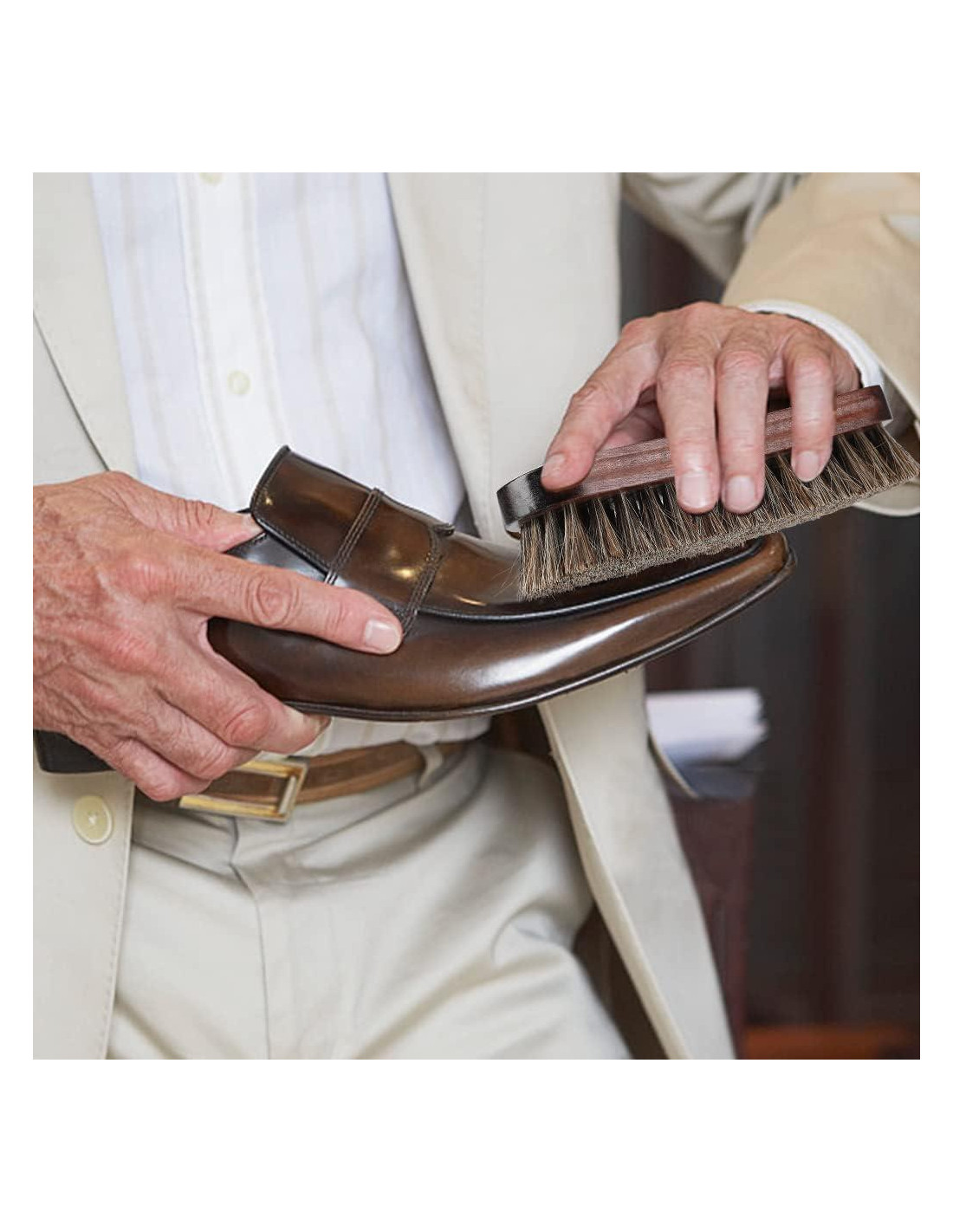 - Cuidado del Cuero - El cuero auténtico requiere una herramienta natural como un cepillo de pelo de caballo para distribuir y mejorar uniformemente la cera para el acondicionamiento y el brillo. El cepillo aplicador asegura una aplicación de pulimento completa y eficiente, destacando una mejora notable en comparación con el uso solo de un paño. El cepillo para brillar zapatos elimina efectivamente la suciedad y los desechos con sus cerdas firmes pero suaves, asegurando que no haya daño ni rasguños en la superficie del cuero.