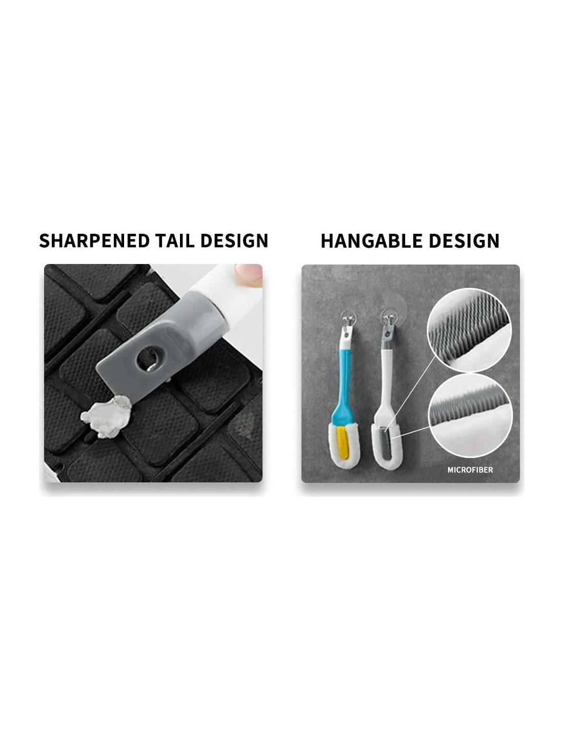 - Diseño de Cola Afilada: La punta de la cola está diseñada para limpiar las manchas acumuladas en la ranura y la suela