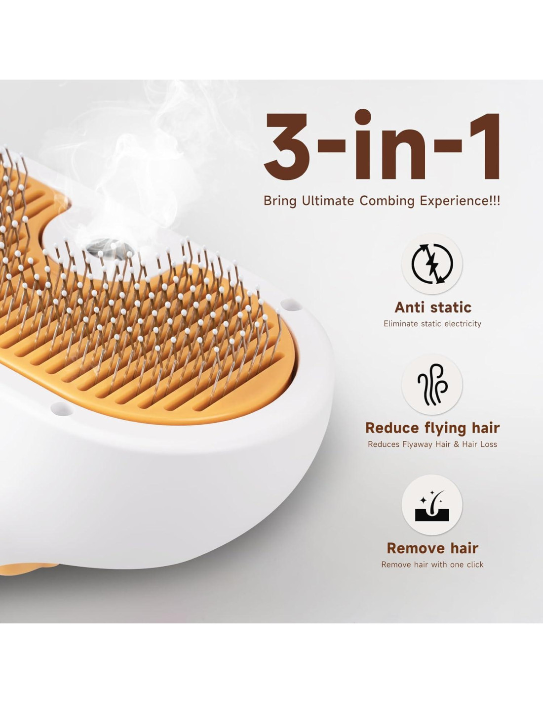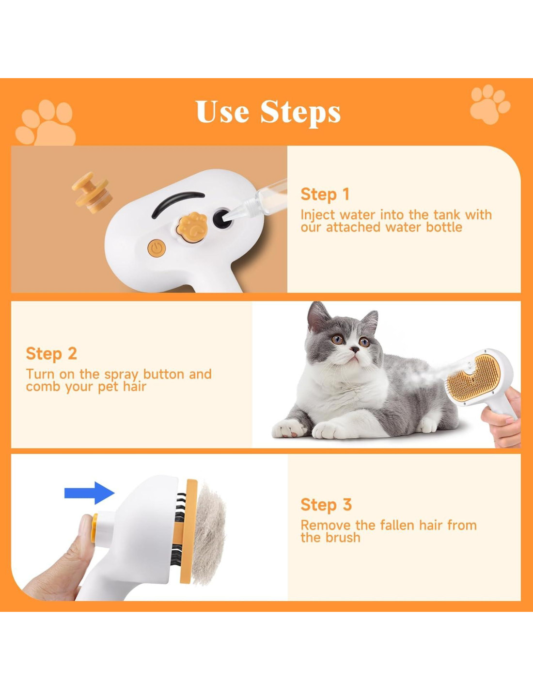 - Herramienta de Acicalamiento para Mascotas Multifuncional Este cepillo de vapor para mascotas combina funciones de eliminación de pelo, spray de vapor, autolimpieza y masaje en uno. Elimina eficazmente el pelo suelto del pelaje de su mascota, reduciendo enredos y matting, y mantiene su pelaje suave y sedoso. Adecuado para gatos de pelo largo y corto, satisface todas sus necesidades diarias de acicalamiento, ayudando a reducir la frecuencia de los baños.