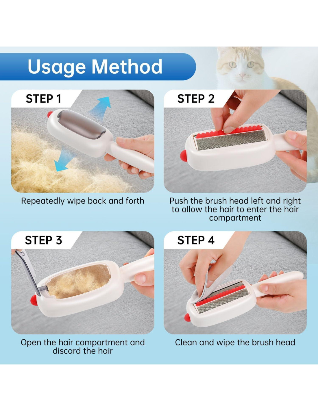 - Dos métodos de limpieza: Usa el Rodillo Quitapelos para Mascotas "húmedo" o "seco". Instrucciones: Cepilla el pelo de la mascota/pelusa en una dirección, luego empuja el caucho para eliminar. Limpia eficazmente ropa, alfombras y ropa de cama.